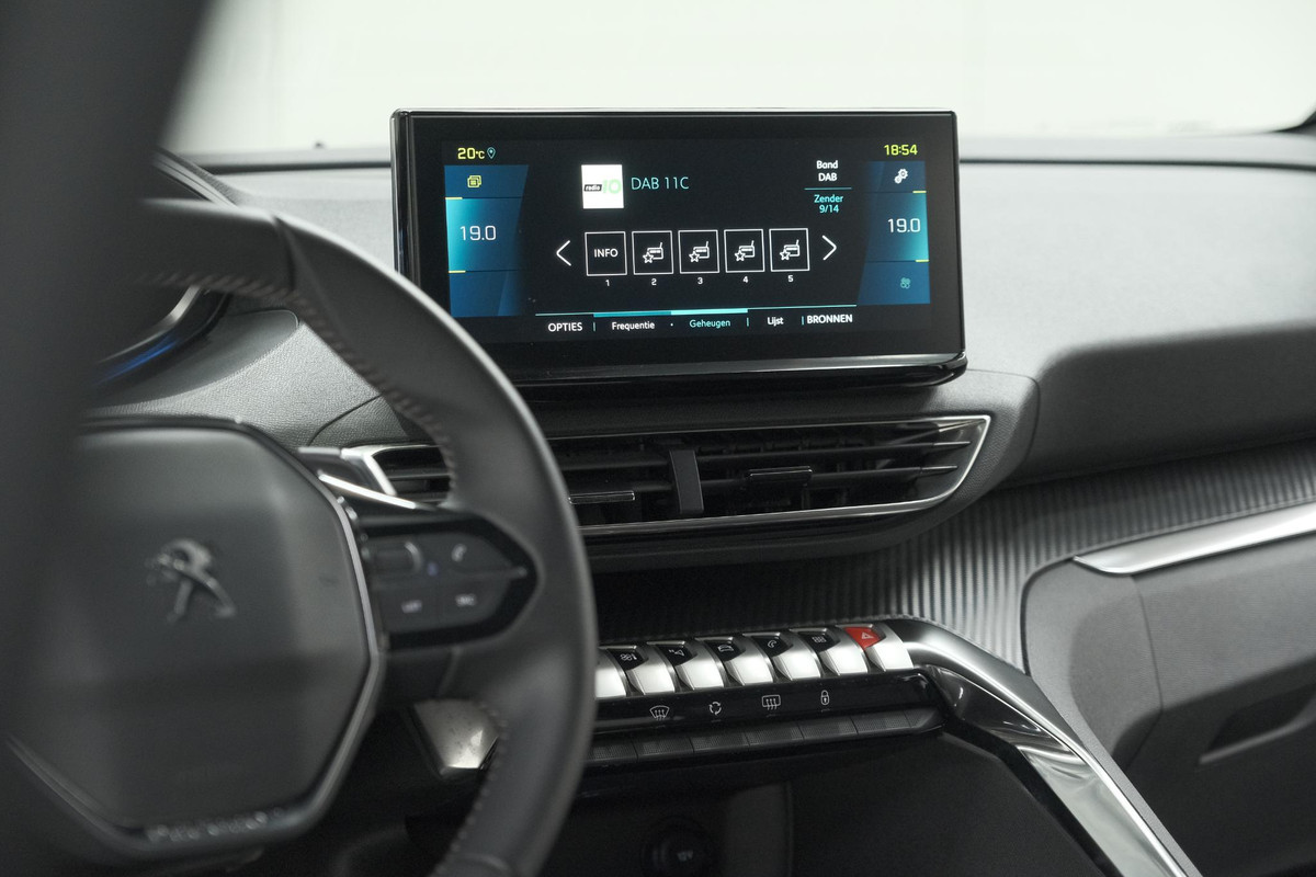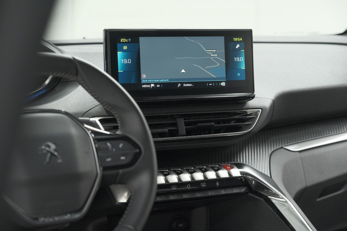 Natuurlijk brengt het digitale dashboard alle ritinformatie perfect in beeld. Maar ook communicatie, navigatie en tal van andere functies zijn permanent te volgen. De achteruitrijcamera maakt inparkeren gemakkelijker dan ooit. Adaptive cruise control houdt de ingestelde snelheid vast en houdt automatisch afstand tot uw voorligger. Gemakkelijk en veilig is de spraakbediening voor het audiosysteem en het full map navigatiesysteem. Daarbij kunt u deze ook bedienen met de knoppen op het stuur. De audio-kwaliteit is geweldig, dankzij de DAB-ontvangst. Electronic climate control verwarmt of koelt het interieur met een druk op de knop. Met regensensor, keyless entry, automatisch dimmende binnenspiegel en lederen stuur is deze Peugeot helemaal compleet.