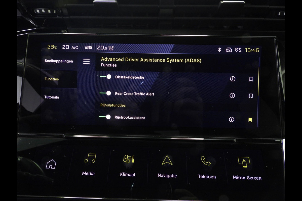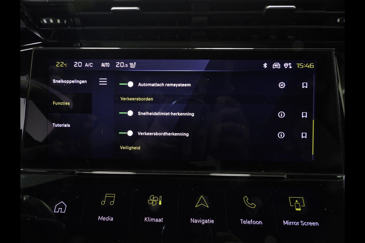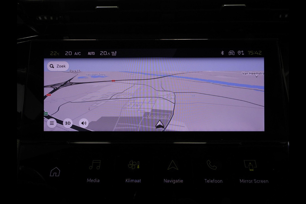 Dankzij het digitale dashboard in deze auto kan u de interface van uw cockpit personaliseren. De vier camera's genereren samen een 360 graden beeld rond de auto, zodat u een volledig overzicht hebt van wat er rondom uw auto gebeurt. Als u de adaptive cruise control inschakelt, regelt de auto zelf de snelheid en de afstand tot de auto voor u. Ingericht op Connected Services, voor een nog veiligere en comfortabelere rit. De geluidskwaliteit aan boord is 'next level' dankzij het high performance audiosysteem. Met dashboard met spraakbediening, full map navigatiesysteem, climate control, draadloos opladen, regensensor en keyless entry is deze Peugeot helemaal compleet.