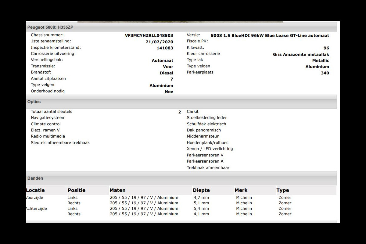 Het kan echter voorkomen dat uit de automatische voertuiginformatie een optie of accessoire naar voren komt die helaas toch niet op de auto aanwezig is.