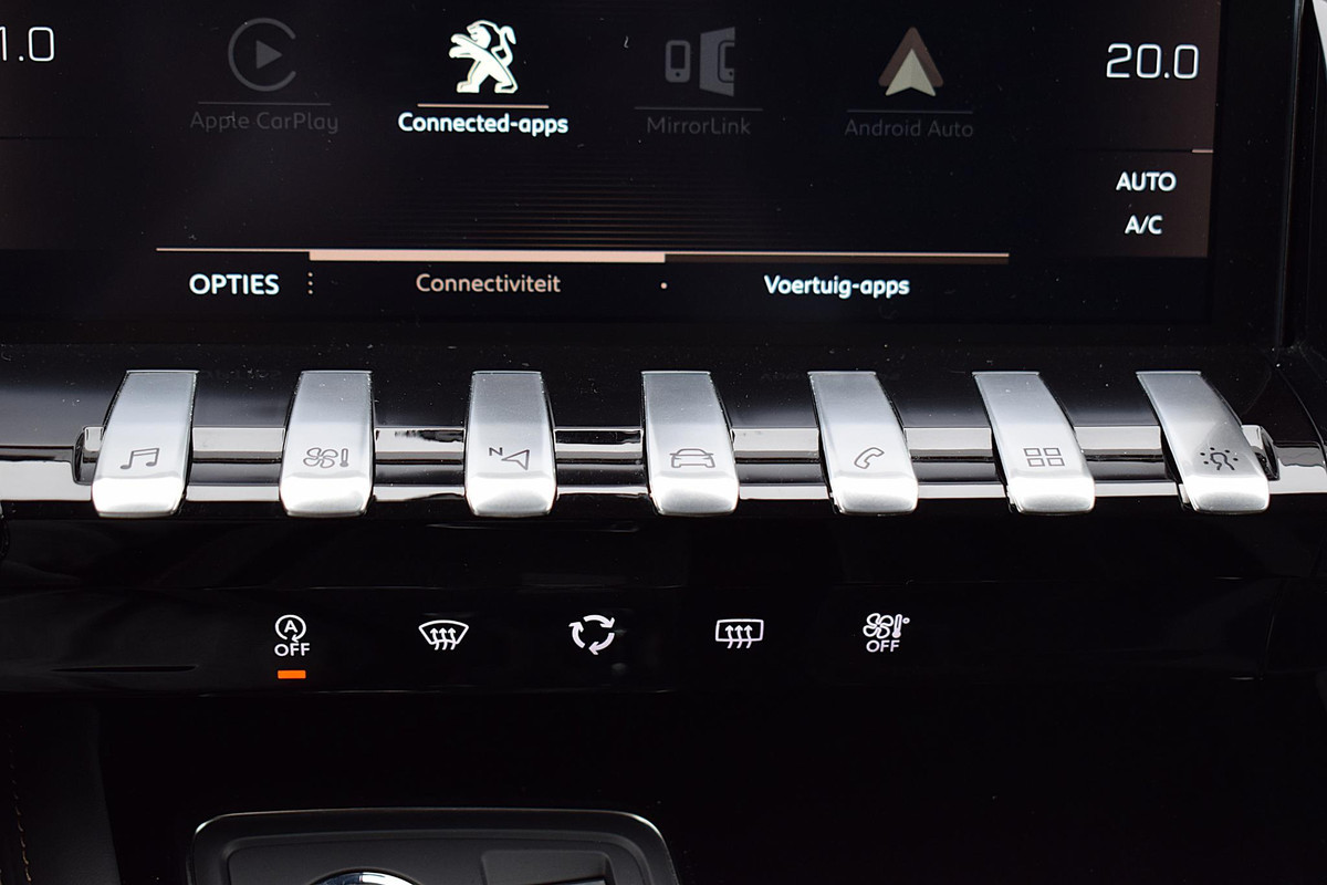 Het digitale dashboard is qua lay-out en zichtbaarheid superslim ingedeeld. Alle functies in één keer in beeld! De achteruitrijcamera laat duidelijk zien hoeveel ruimte u nog heeft bij het inparkeren. Met adaptive cruise control houdt deze auto automatisch afstand tot uw voorligger. Kilometerstand? Oliepeil? Accuspanning? Allemaal te zien via de app. Overal. Altijd. Dankzij Connected Services. Onderweg kunt u veilig genieten van het audiosysteem met DAB-radio en het full map navigatiesysteem. Want in deze Peugeot bedient u ze vanaf het stuurwiel of met uw stem. Ook automatische airconditioning, draadloos opladen, regensensor, keyless entry, automatisch dimmende binnenspiegel en lederen stuur zijn aan boord.