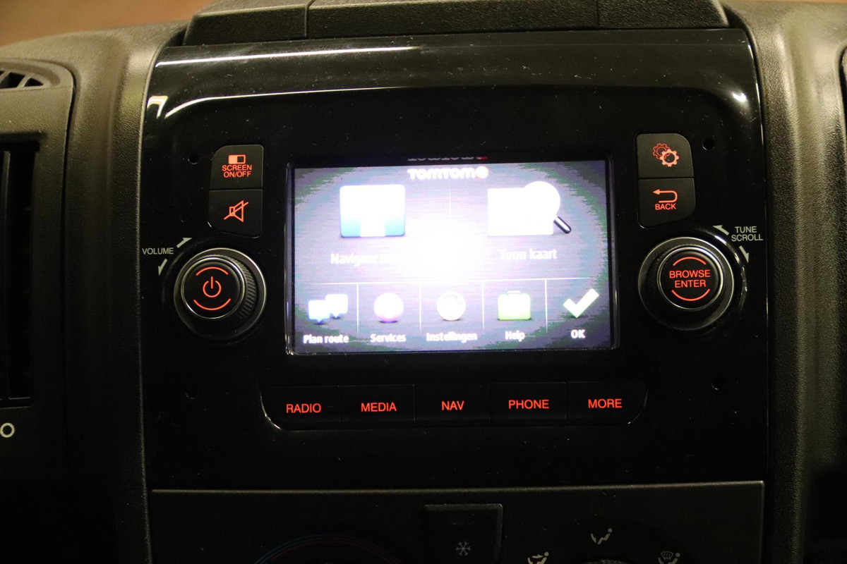 De Peugeot Boxer bestelbus is voorzien van airco, cruise control en navigatiesysteem en achteruitrijcamera.