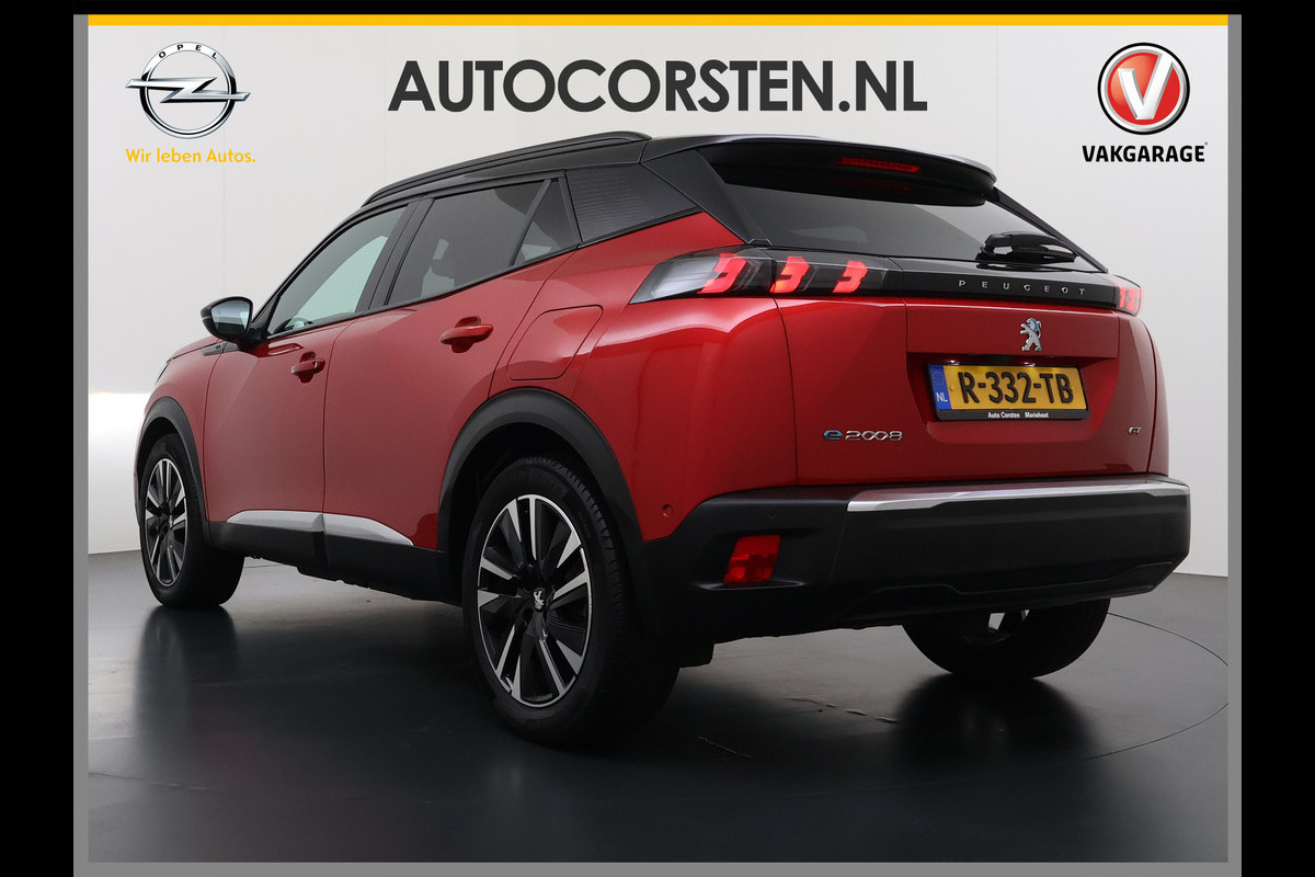 Peugeot e-2008 EV GT 50kWh Pano-Dak 360°Camera 3-fase 18" 1/2 Leer/Alcantara Adaptive-Cruise 3D-Navi ParkAssist PDC-a+v Ecc Stoelverwarming App SOH 91% Keyless Led LmvPrivacy Glas BlindSpot Assist Lane Assist Isofix DAB+ Regen-Lichtsensor Dealeronderhouden € 40.000 nieuw!