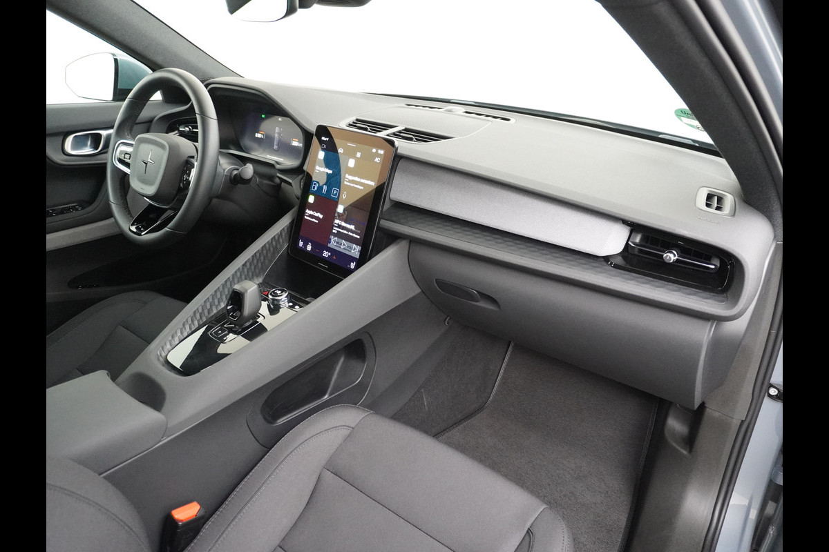 Begeef u op de geweldige rit door de digitale wereld van mobiliteit waar alles wat u wenst voor comfort en veiligheid, wordt geprojecteerd op het digitale dashboard. Geen nekkramp of spiegelwerk meer bij het achteruitrijden: de achteruitrijcamera kijkt en ziet alles! Zoals u van zo'n jonge auto mag verwachten, zijn hier ook de geavanceerde remote services aanwezig. Simpelweg met een app op uw smartphone controleert u op afstand de status van de auto en bedient u diverse functies. Laat u onderweg niet afleiden, de bediening van het audio-installatiesysteem en ook het navigatiesysteem gaat met knoppen op het stuur. Natuurlijk is de audio-installatie voorzien van DAB-ontvangst. Aan boord van deze Polestar 2 is een achteropkomend verkeer waarschuwing voor extra veiligheid. Extra opties op deze auto zijn: automatische airconditioning, regensensor, cruise control, keyless entry, automatisch dimmende buitenspiegels en isofix-aansluiting.