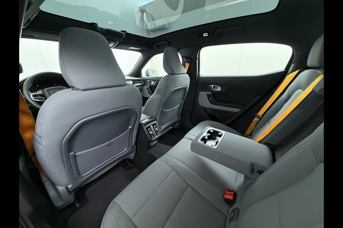 Met de Polestar 2 kiest u voor het rijplezier van de toekomst. De volledig elektrische aandrijflijn zorgt voor krachtige prestaties en een sensationeel acceleratievermogen. De elektromotor laat u geluidloos over de weg gaan. Wat een verademing, en zoveel power ook nog! Een krachtige motor geeft deze auto zijn sportieve prestaties. Solide op nat asfalt en regenklinkers, maar net zo onverschrokken op de onverharde weg: de vierwielaandrijving trekt u overal doorheen. U past de stoelen moeiteloos aan, ze zijn elektrisch in te stellen en hebben bovendien een geheugen. Zelfs op de koudste dagen zorgt het verwarmbare stuurwiel, de voorstoelen en de achterbankverwarming ervoor dat u en uw passagiers het nooit koud hebben in deze luxueuze auto. Een praktische extra is de elektrisch bedienbare achterklep die opent en sluit met een druk op de knop. Het glazen panoramadak geeft ook doordeweeks een vakantiegevoel. Wat een licht en zicht! Ook is de auto voorzien van: LED koplampen, zwarte hemelbekleding, getint glas, in delen neerklapbare achterbank, LED-achterlichten en verstelbare lendensteunen.