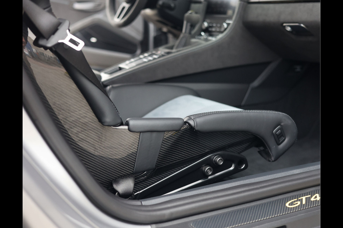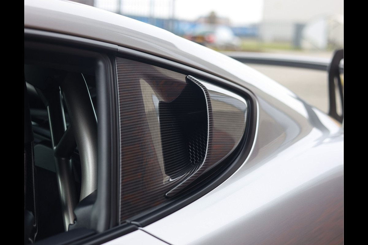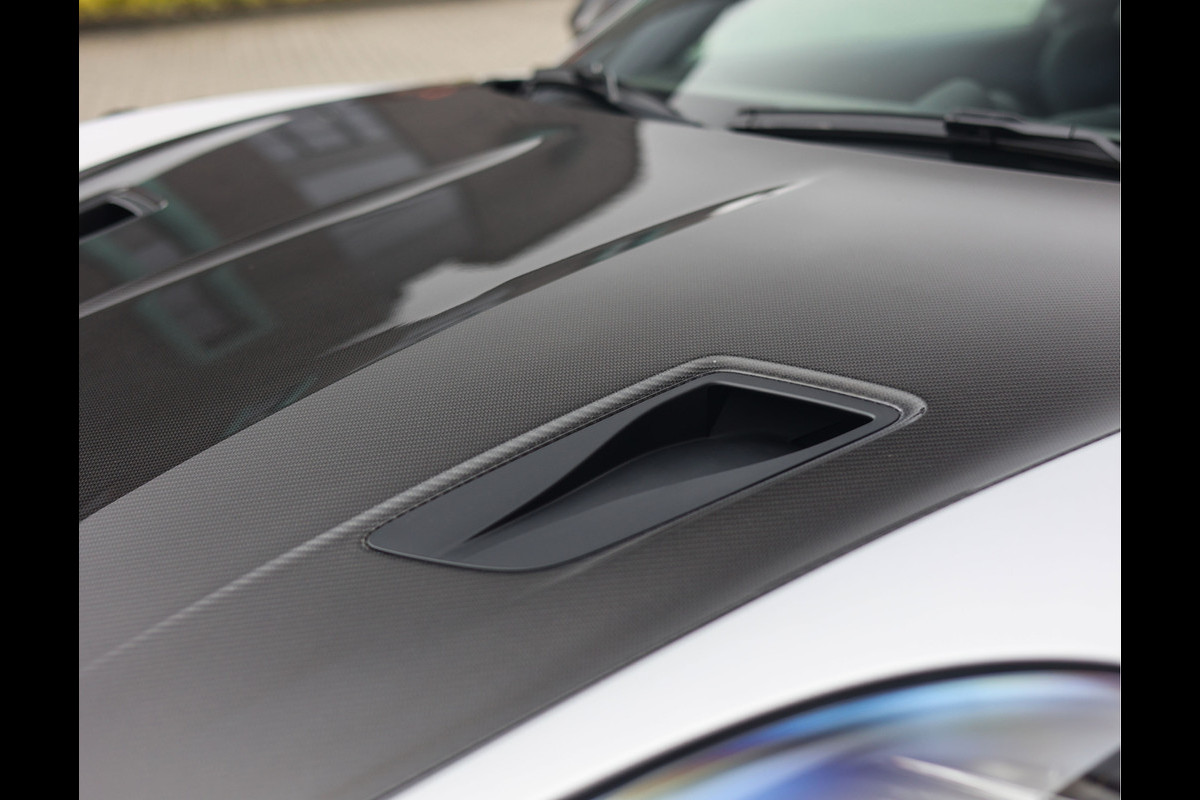 Met de prestaties zit het dus wel goed, maar het oog wil natuurlijk ook wat. Dit exemplaar is dan ook zeer fraai uitgevoerd in GT-Silver metallic, wat de carbon onderdelen van het Weissach-pakket extra goed naar voren laat komen. De in platinum gespoten velgen met centerlocks, de rode remklauwen en de grote achterpoiler tillen de sportieve beleving naar een nóg hoger niveau.