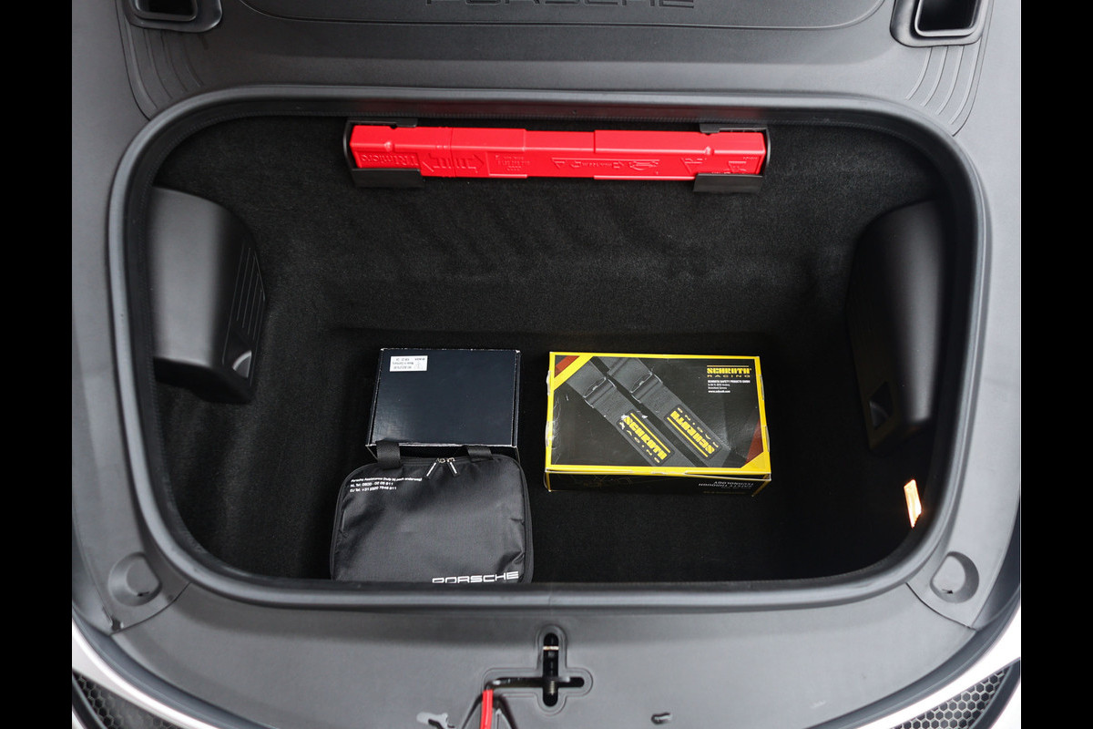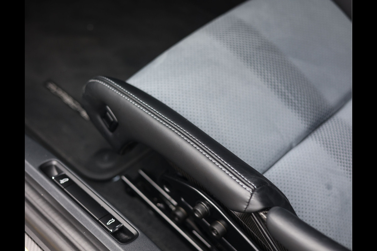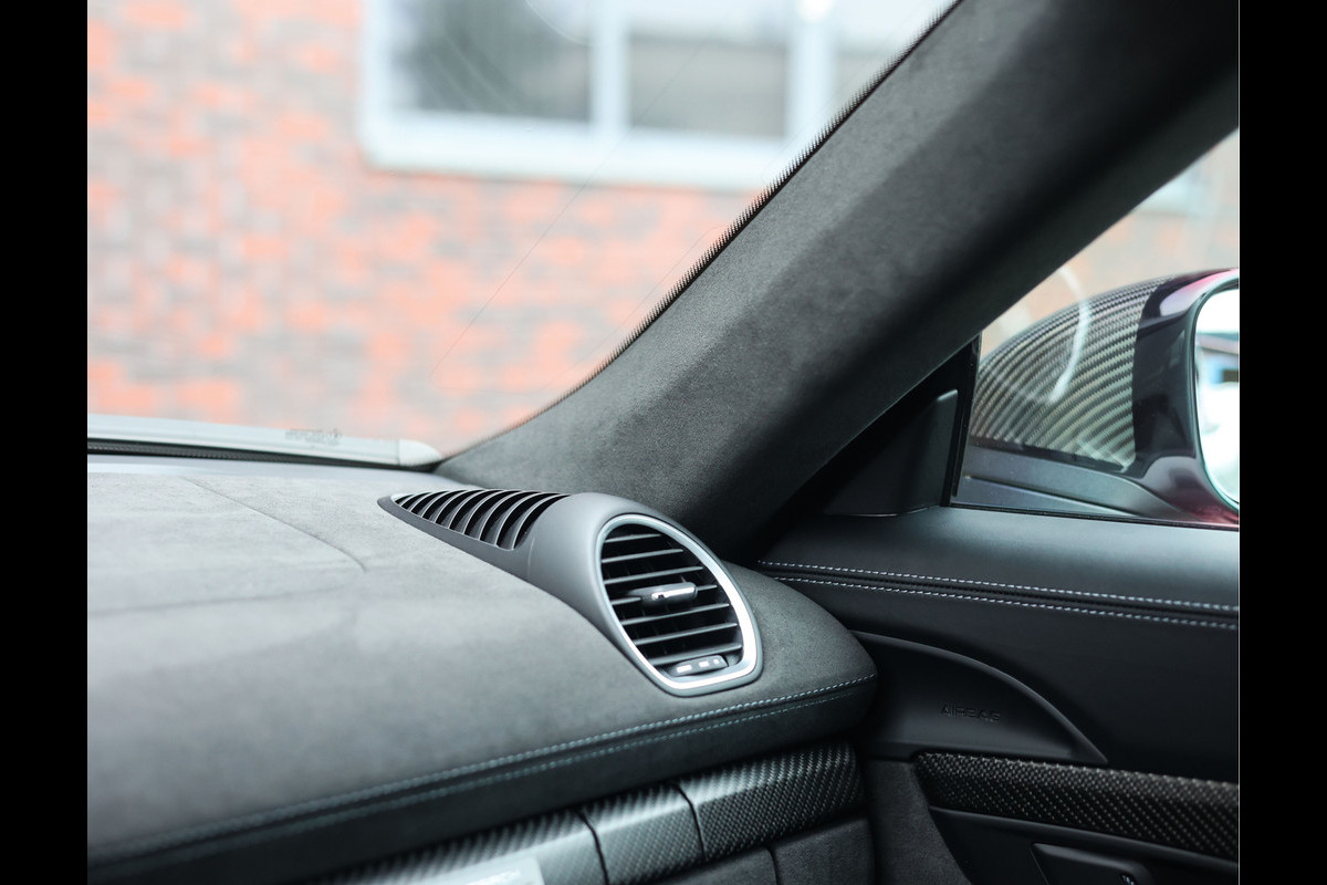 In het interieur vinden we zwart leder en Race-Tex bekleding. Om toch nog wat luxe te brengen is het interieur uitgerust met een uitgebreid lederpakket. De kuipstoelen bieden optimale steun wanneer u de grenzen van deze auto opzoekt. Mocht u met de auto naar een circuit rijden, geniet u van het infotainmentsysteem met Apple Carplay en een BOSE geluidssysteem, al denken wij dat u die niet veel zult gebruiken gezien de motor die achter u ligt…