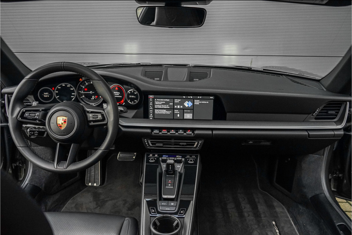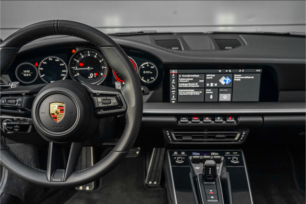 Autobedrijf Schouten biedt u deze Porshe 911 3.0 Carrera S aan, een werkelijk prachtig uitgevoerde 911 in zeer nette staat. De Porsche is nieuw geleverd bij de Porsche dealer in Hamburg, vervolgens is de auto naar Nederland gekomen per 10-12-2022. Sindsdien heeft de auto in Nederland 1 eigenaar gehad. De Porsche heeft momenteel een kilometerstand van 18.900 KM, en er wordt nog een beurt uitgevoerd bij de Porsche dealer in de 11e maand. Het exterieur van de Porsche 911 is uitgevoerd in de unieke metallic kleur: 'Aventurin Gruen', gecombineerd met een zwart lederen interieur. Verder beschikt de Porsche 911 Carrera S over een mooie lijst met fabrieksopties. Denk hierbij aan opties zoals: