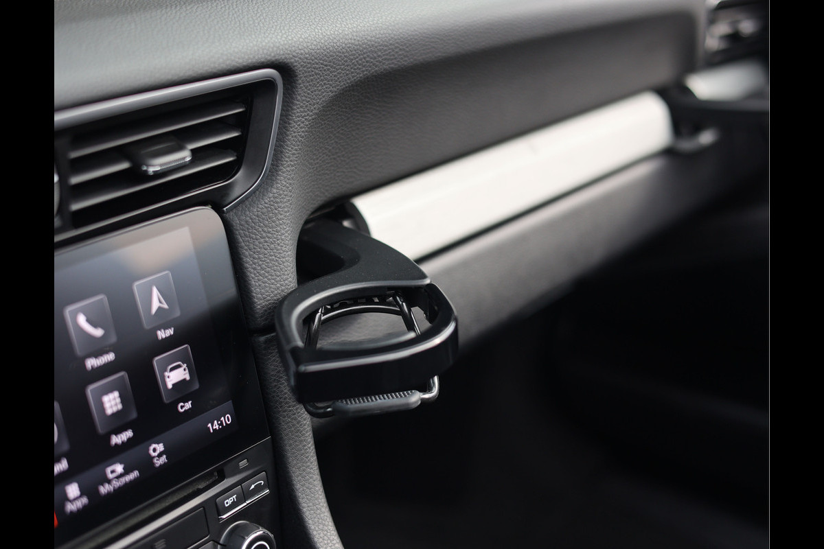 Het interieur is bekleed met zwart geperforeerd leder en Race-Tex. De sportstoelen zijn voorzien van verwarming én ventilatie zodat u ieder seizoen kunt genieten van de unieke Targa-beleving. Met Apple Carplay en het BOSE geluidssysteem luistert u naar uw favoriete muziek, al denken we dat u liever luistert naar de iconische zescilinder boxermotor!