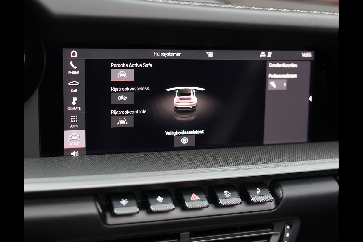 Qua techniek is dit exemplaar zeer goed uitgerust. Denk aan een liftsysteem in de vooras, PDLS+ dynamische LED koplampen en het actieve PASM onderstel, inclusief vierwielbesturing. Hierdoor biedt deze 911 een ongekende rijbeleving zoals alleen een 911 dat kan: Stabiel, strak en vol vertrouwen. Voor dagelijks comfort zijn de 18-voudige sportstoelen voorzien van verwarming en ventilatie en zijn alle assistentiesystemen aanwezig.