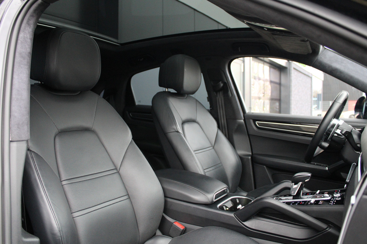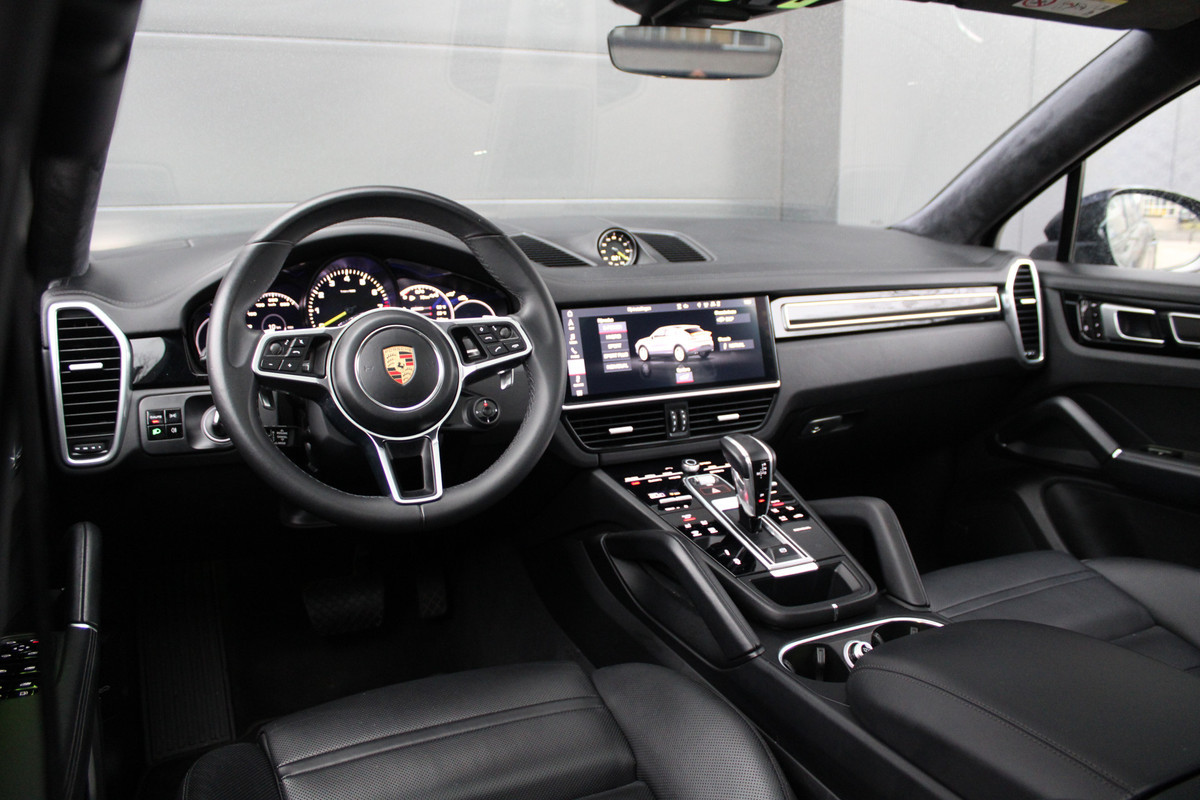 Het interieur van deze Porsche Cayenne Coupé beschermt u als een veilige cocon. Het onderstel is ontworpen om de scherpste bochten en de slechtste wegen aan te kunnen en de motor reageert alert op ieder commando. De hybridemotor geeft deze auto sportieve prestaties en zorgt voor een laag brandstofverbruik. Dat noemen ze nou een ruimtelijk effect: het elektrisch bediende glazen panorama dak, dat net zo gemakkelijk open en dicht gaat als de elektrisch bedienbare achterklep. En ondertussen het ware luxegevoel van het lederen interieur. De stoelverwarming maakt het interieur snel behaaglijk op koude dagen. Bij de uitrusting van deze auto horen onder meer 21 inch lichtmetalen velgen, LED koplampen, adaptief dempingsysteem, warmtewerend glas, trailer assistent en dakspoiler.