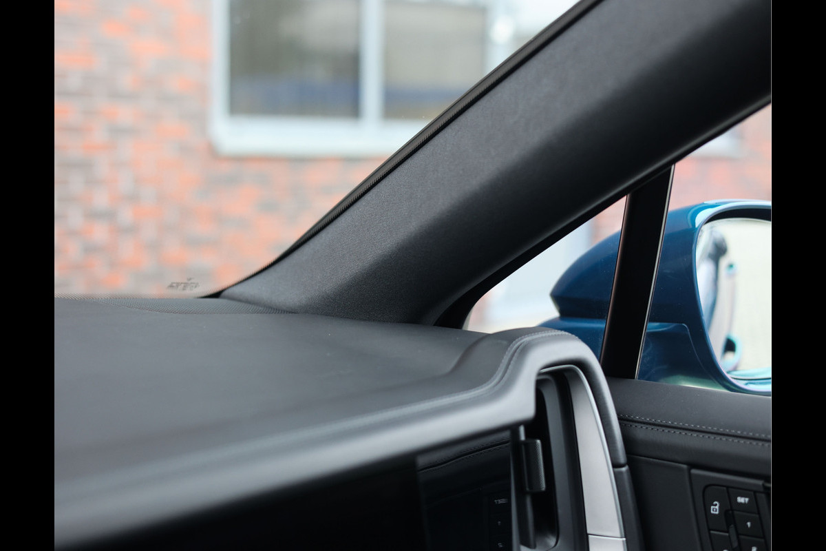 Laten we beginnen met het exterieur. Deze Cayenne Coupé valt zeker op in het Nederlandse straatbeeld. Het Montegoblauw metallic lakwerk staat de auto prachtig en combineert goed met het hoogglans zwarte SportDesign pakket en 22” RS Spyder Design velgen. De verduisterde Matrix koplampen en het verduisterde achterlicht maken het plaatje compleet.