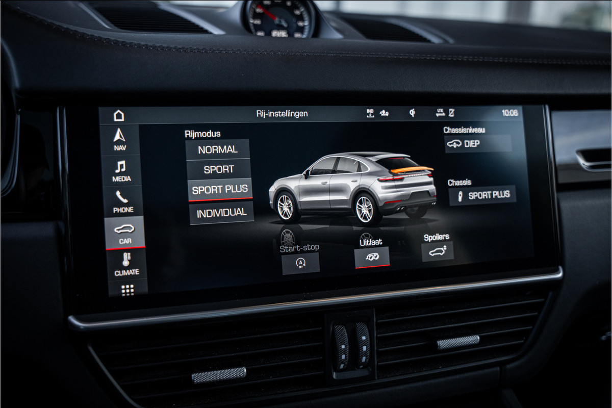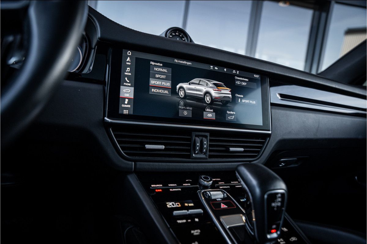 Het exterieur van de Cayenne Coupé is een statement dat geen toelichting nodig heeft — het vloeiende daklijn, de brede achterzijde met het actieve spoilersysteem en de uitgesproken wielkasten communiceren direct en zonder omwegen wat voor auto dit is. Binnen wacht een Porsche cockpit die volledig om de bestuurder is gebouwd — het Sport Chrono pakket, het PCM infotainmentsysteem en een afwerking waarbij elk materiaal en elk detail herinnert aan het feit dat Porsche geen auto's bouwt voor mensen die genoegen nemen met bijna goed genoeg.
