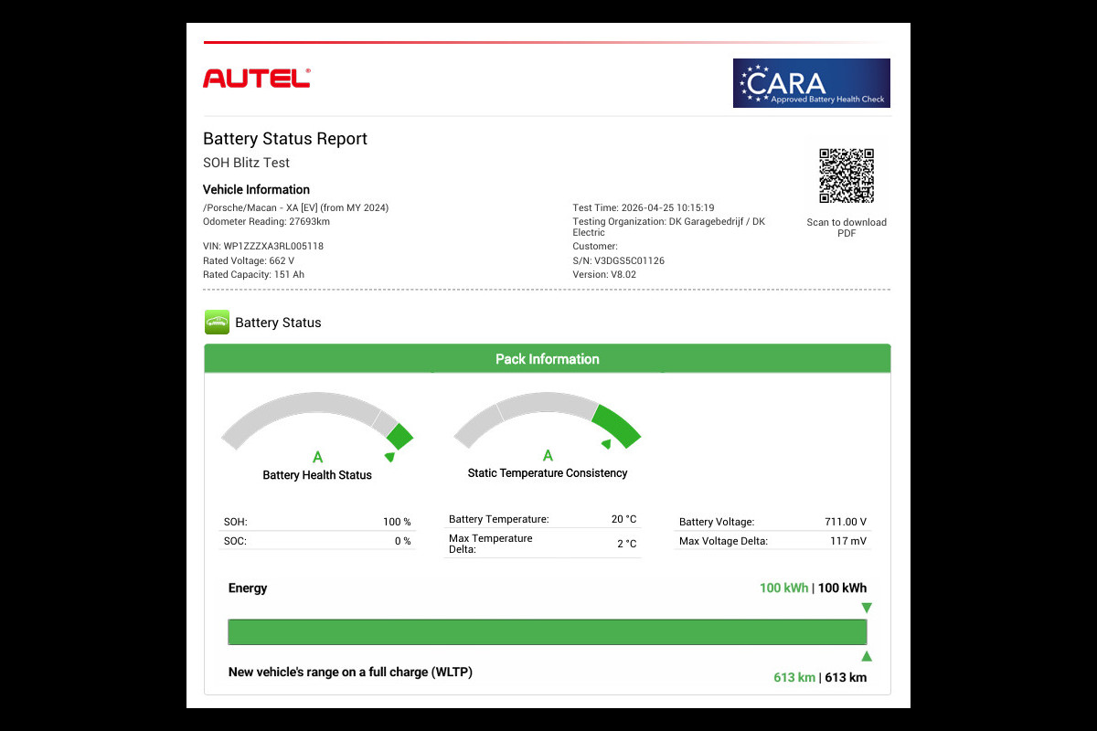 Accu: 100 kWh, Conditie: 100%
