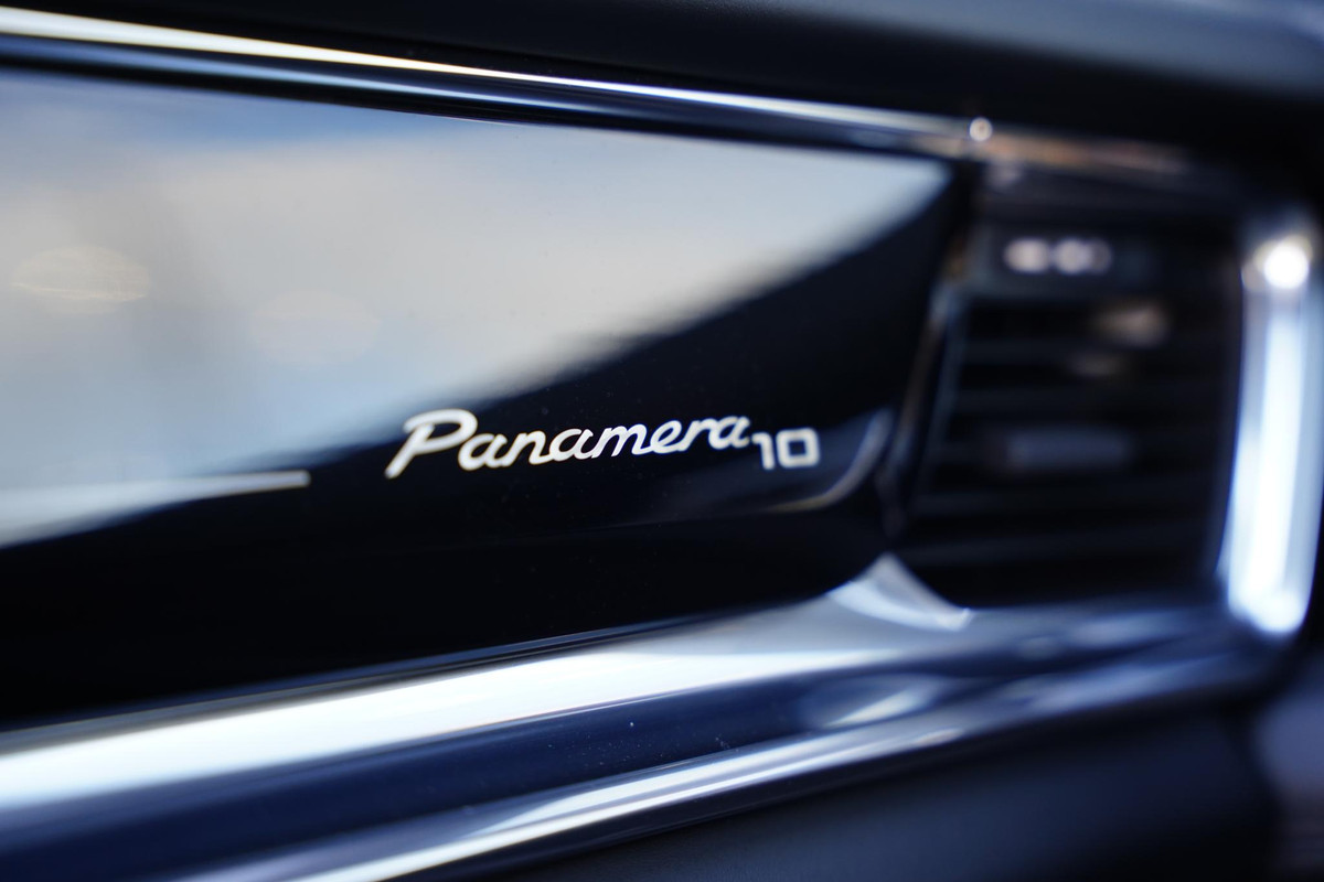 - Panamera 10-logo’s op de portieren in matching White Gold Metallic