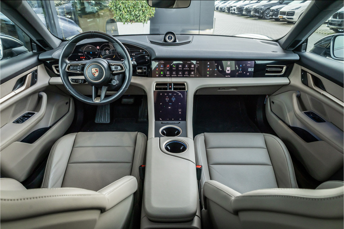 Het exterieur is een studie in tijdloze sportiviteit — de lage, brede houding, de vloeiende lijnen en de onmiskenbare Porsche DNA maken de Taycan tot een auto die over tien jaar nog steeds modern oogt. Binnen wacht een cockpit die volledig digitaal is zonder ook maar iets van zijn intuïtiviteit te verliezen — het curved display, de optionele passagiersdisplay en de verfijnde afwerking herinneren je bij elke rit aan het feit dat Porsche luxe en technologie beschouwt als twee kanten van dezelfde medaille.