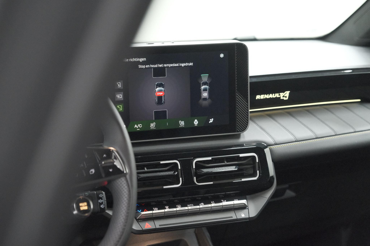 De achteruitrijcamera maakt inparkeren gemakkelijker dan ooit. Met adaptive cruise control houdt de auto zelfstandig afstand tot uw voorligger. Een veiligheidsverhogende optie waarmee u comfortabel onderweg bent. Naast handmatige bediening kunt u belangrijke functies met uw stem bedienen dankzij de ingebouwde spraakbediening. Het navigatiesysteem zorgt ervoor dat u altijd de juiste en snelste route vindt. Deze Renault 4 denkt vooruit als u van plan bent af te slaan. De kruisend verkeer detectie calculeert en analyseert het tegemoetkomende verkeer en waarschuwt als het risico op aanrijding bestaat. Deze Renault is voorzien van automatische airconditioning, draadloos opladen, regensensor, keyless entry en automatisch dimmende binnenspiegel.
