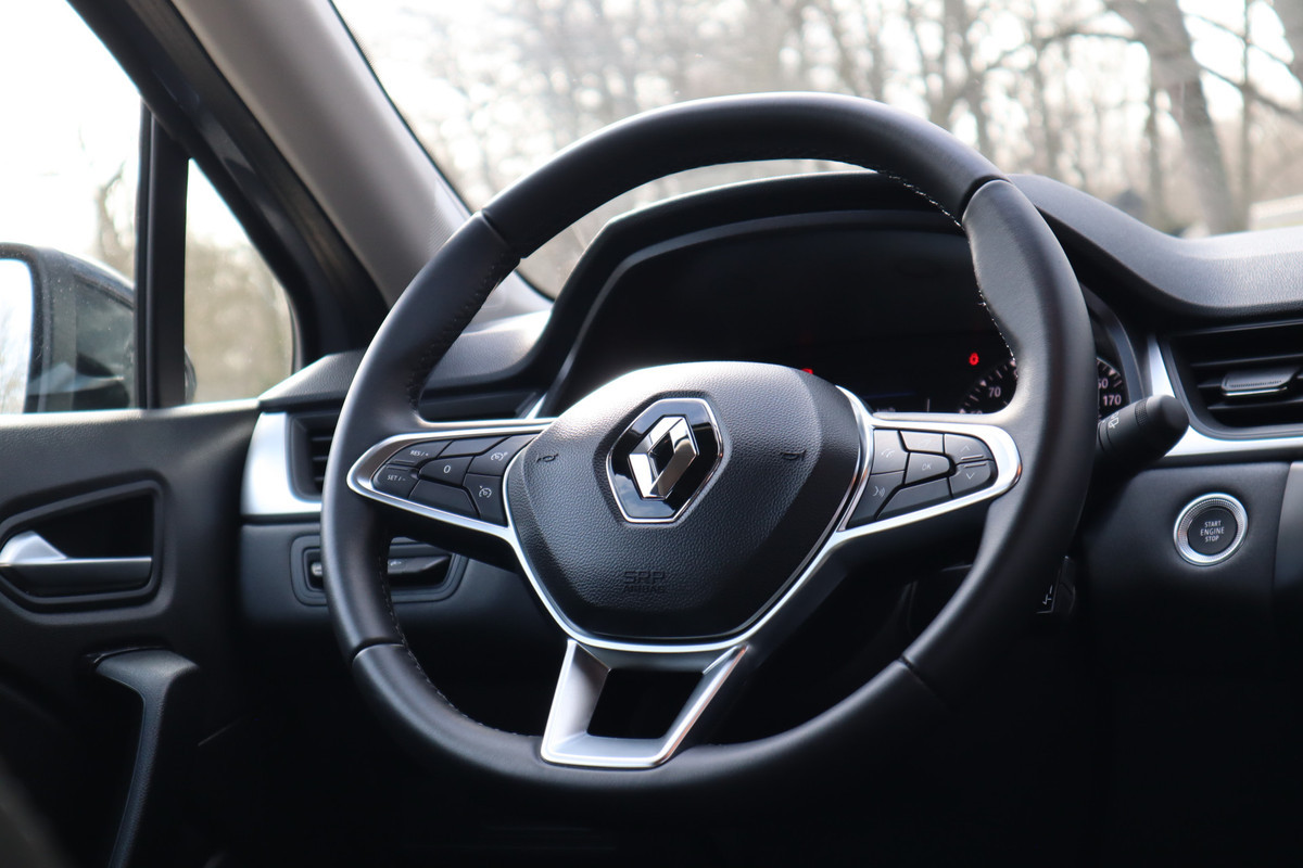 Vergeten af te sluiten? Bandenspanning onvoldoende? De speciale app geeft u direct een seintje met behulp van Connected Services. In deze auto wordt u elke rit opnieuw bijgestaan door een gebruiksvriendelijk navigatiesysteem, terwijl u luistert naar het glasheldere geluid van het audiosysteem met DAB-radio. Inparkeren zonder angst voor schade. De parkeersensoren helpen u om moeiteloos in de kleinste parkeervakken te manoeuvreren. Voor de lange ritten is de cruise control een verademing. Met de keyless entry ontgrendelt deze Renault Captur zich automatisch als u het portier wilt openen. De uitrusting van deze Renault is met airconditioning, boordcomputer, verstelbaar stuur en lederen versnellingspook behoorlijk compleet.