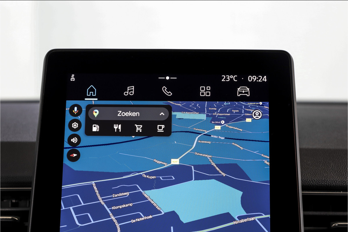 Qua comfort en gebruiksgemak is hij rijk uitgerust. Zo beschikt deze Captur over adaptieve cruise control, elektrisch verstelbare bestuurdersstoel, voorstoelen verwarmd en een verwarmd stuur – prettig tijdens koude dagen. Ook aan connectiviteit is gedacht met Apple CarPlay/Android Auto en het ingebouwde navigatiesysteem werkt op basis van geïntegreerde Google Maps, wat zorgt voor actuele en duidelijk leesbare route-informatie. Bovendien kun je het systeem eenvoudig bedienen via spraakbediening.