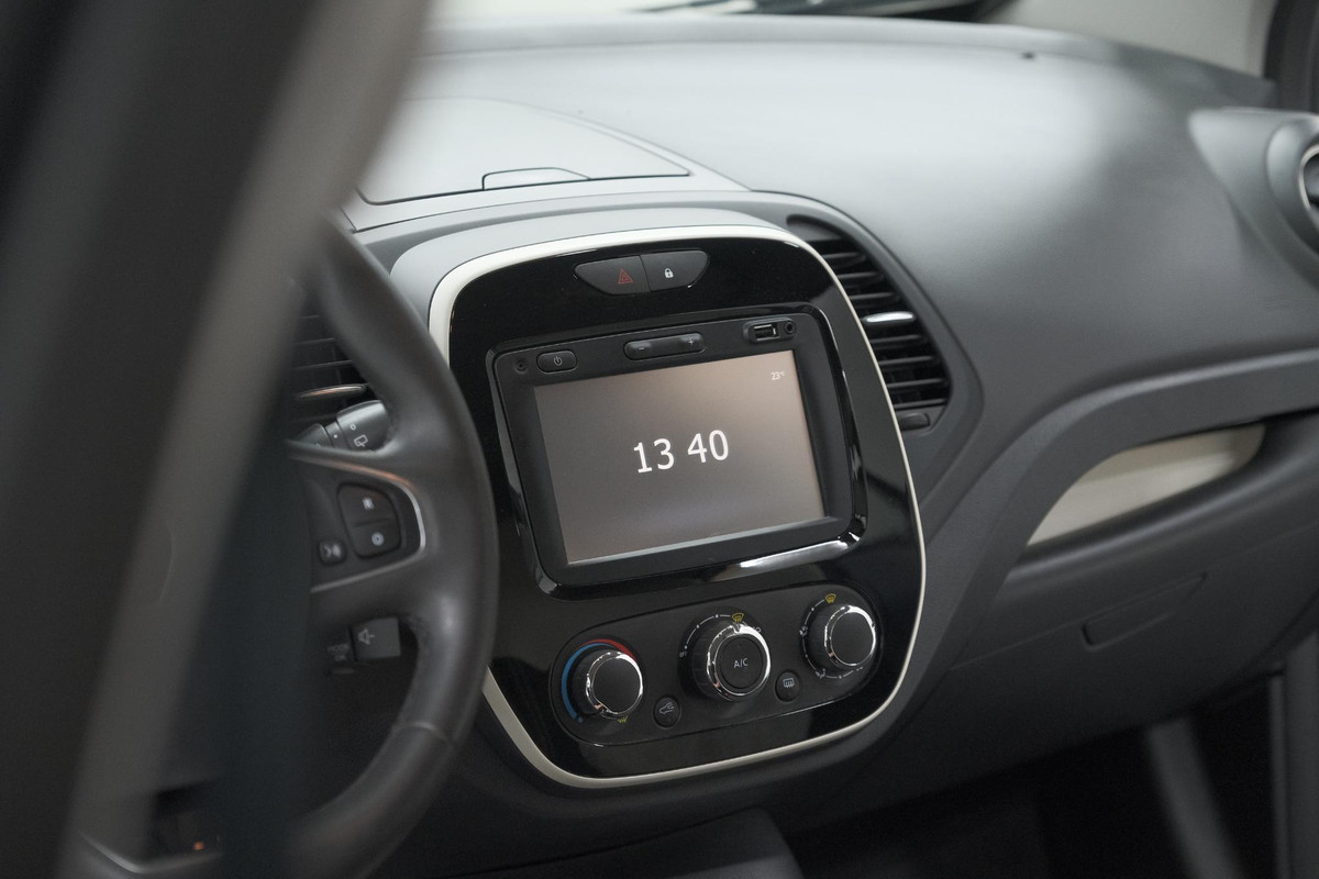 Kies de muziek waarvan u houdt, dankzij de DAB-radio klinkt het altijd geweldig. Intussen bedient u het audio-installatiesysteem en het full map navigatiesysteem met de knoppen op het stuur. Geen parkeervak is te klein dankzij de assistentie van de parkeersensoren. Cruise control is ook een van de meegeleverde opties. Een handige optie is de keyless entry: de Renault Captur opent automatisch alle sloten zodra u dichtbij bent. Het doek is gevallen voor de ouderwetse autosleutel. Instappen en wegrijden gaat met keyless start. Deze auto is voorzien van airconditioning, boordcomputer, verstelbaar stuur en lederen versnellingspook.