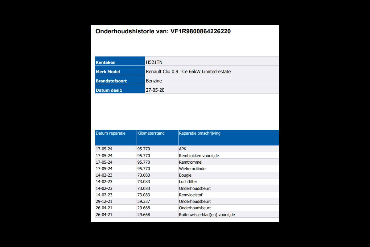 Onderhoudsboekjes: Aanwezig (dealer onderhouden)