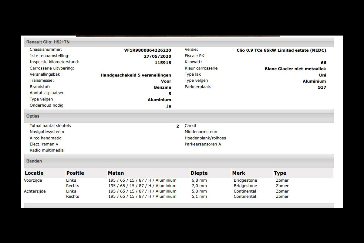 Het kan echter voorkomen dat uit de automatische voertuiginformatie een optie of accessoire naar voren komt die helaas toch niet op de auto aanwezig is.