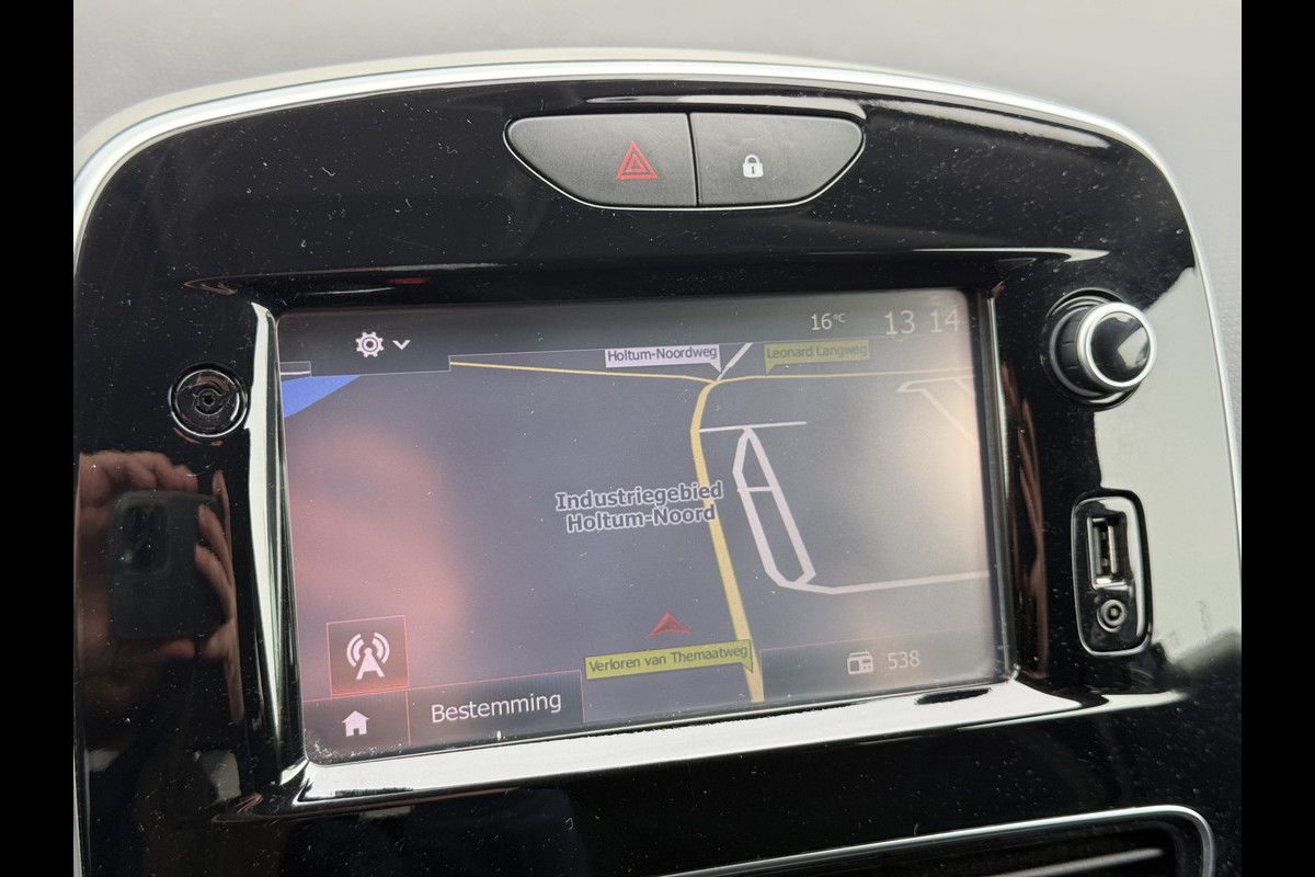 Er is geen bestemming die het aanwezige full map navigatiesysteem niet kent. Dat rijdt lekker! De achteropkomend verkeer waarschuwing bewaakt de afstand tot achterliggers en geeft een signaal als er te weinig ruimte is. De audiobediening op het stuur zorgt dat muziek en informatie kunnen worden aangepast zonder het zicht op de weg te verliezen. Geniet van een ruime selectie digitale radiostations met de DAB-ontvanger. Parkeerplekken worden er niet ruimer op. Maar met de aanwezige parkeersensoren krijgt u deze Renault Clio Estate zonder problemen op z'n plaats. Ook cruise control, keyless entry, airconditioning, buitentemperatuurmeter, lederen stuur en usb-aansluiting zijn aan boord.