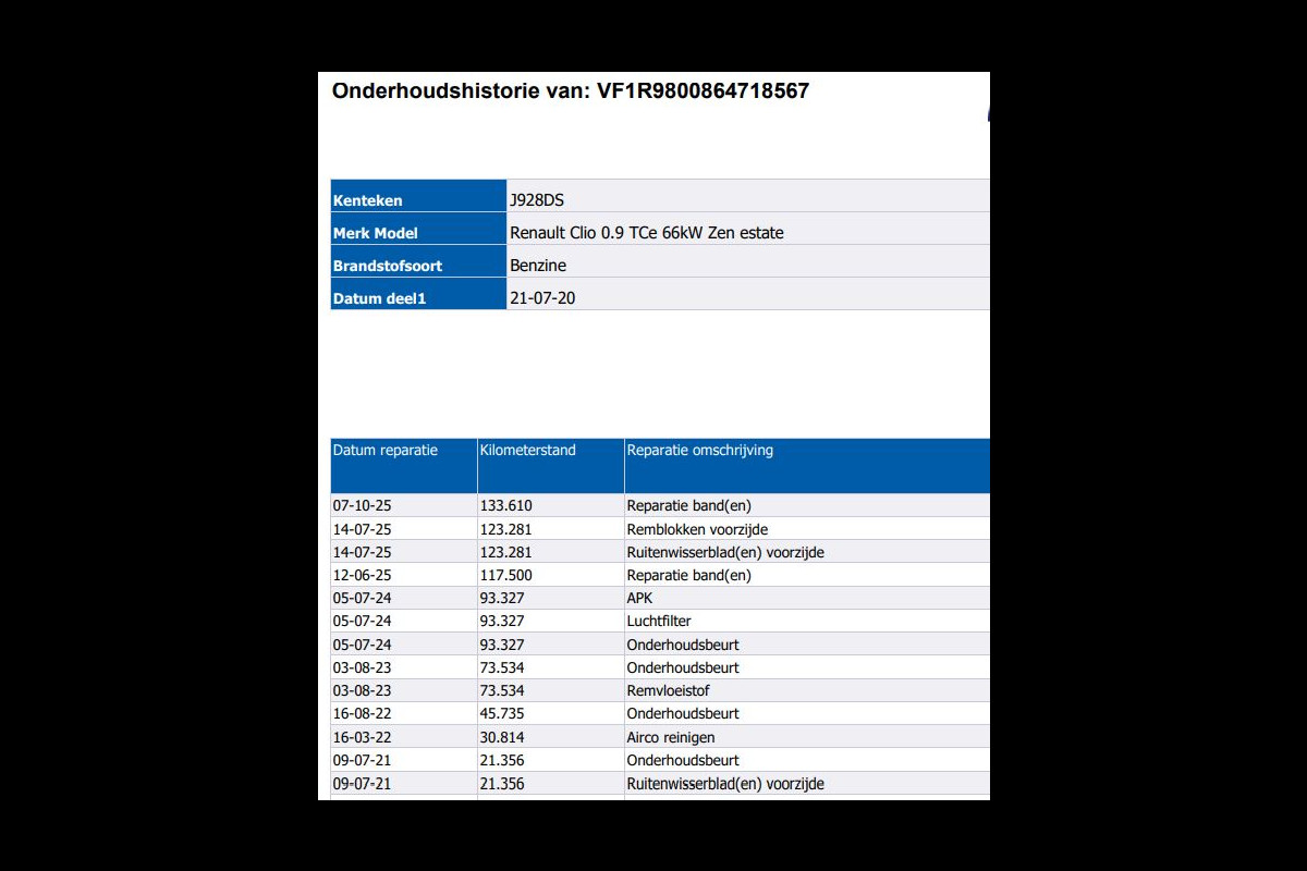 Onderhoudsboekjes: Aanwezig (dealer onderhouden)