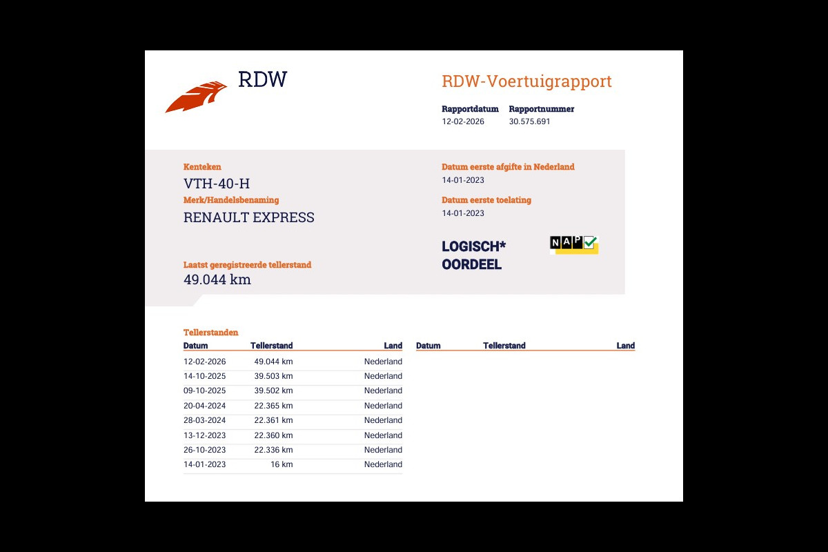 Dat de kilometerstand in orde is, blijkt uit het meegeleverde tellerrapport van Nationale Autopas. Indien u interesse heeft in deze Renault, zetten we hem graag klaar voor een proefrit. We horen graag van u, mailt of belt u ons meteen?