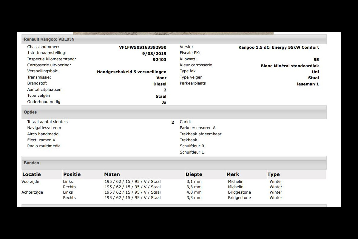 Het kan echter voorkomen dat uit de automatische voertuiginformatie een optie of accessoire naar voren komt die helaas toch niet op de auto aanwezig is.