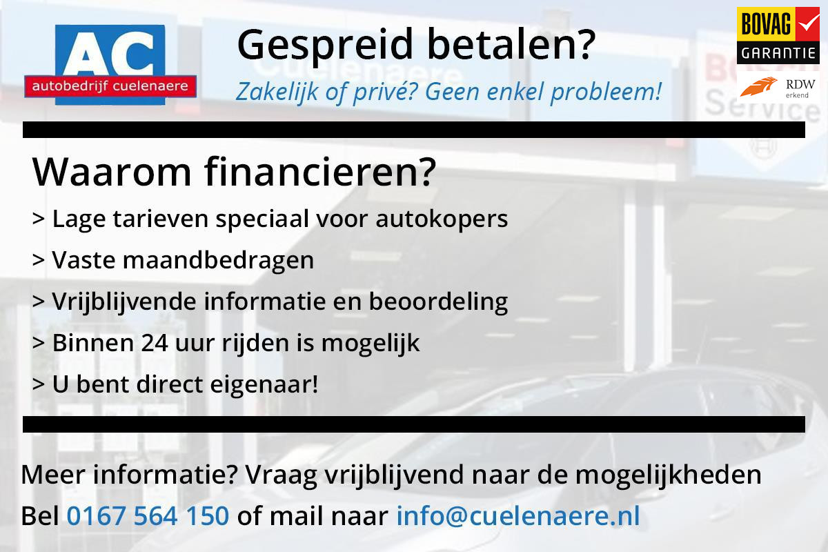 - Garantie en onderhoudswerkzaamheden worden door Autobedrijf Cuelenaere gedaan anders vervalt garantie