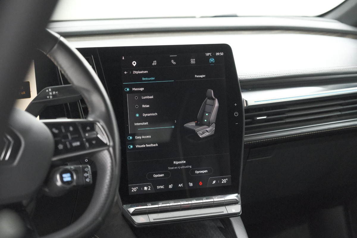 Het maakt niet uit of u voor de vormgeving of voor de elektrische aandrijving valt. Met de Renault Megane E-Tech zit u altijd goed. De modernste techniek is toegepast om u in alle rust en stilte van de rit te laten genieten. Daarbij zult u zien dat de tijd om de accu's op te laden enorm meevalt, en dankzij de flinke actieradius hoeft u dat ook niet zo vaak te doen. Met het lederen interieur ervaart u direct het gevoel van luxe en comfort. Doe maar luxe! Neem plaats in de verwarmbare voorstoelen en voel hoe de massagefunctie zorgt voor verfrissende doorbloeding op de lange ritten. Als het buiten koud wordt, voelt zo'n verwarmd stuurwiel heerlijk aan. Natuurlijk behoren 20 inch lichtmetalen velgen, Full LED koplampen, dakspoiler, extra getint glas, in delen neerklapbare achterbank en LED-achterlichten ook tot de uitrusting van deze complete auto.