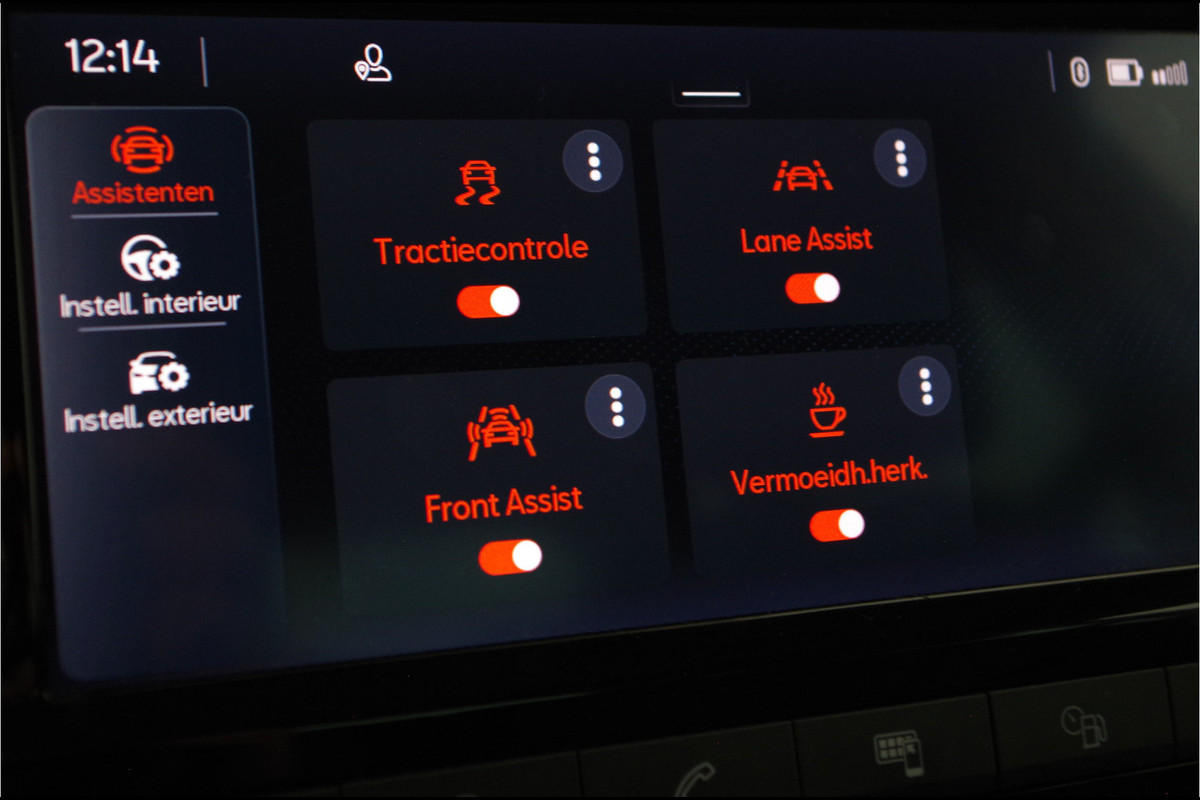Binnenin vind je automatische airconditioning, een handige armsteun, en front assist voor extra veiligheid.