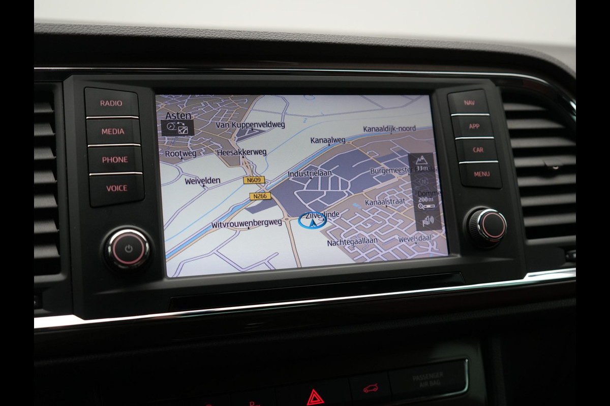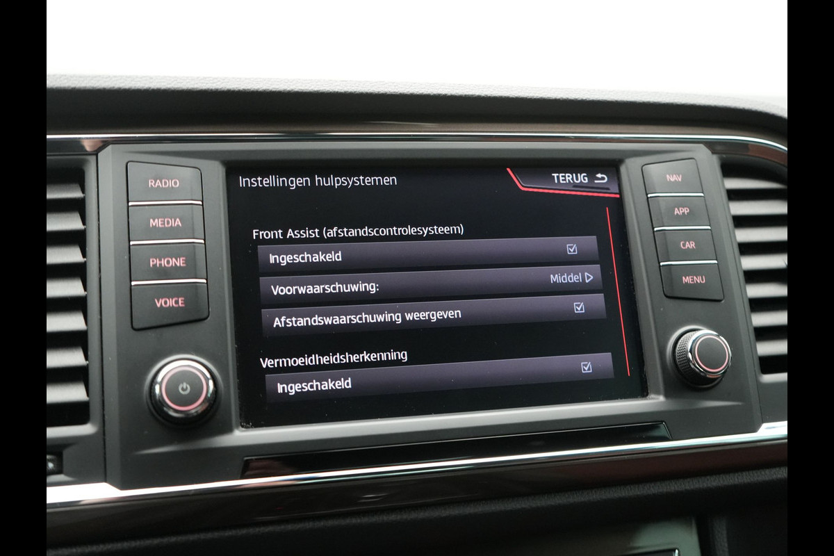 De 360 graden camera op deze auto biedt u een volledig, panoramisch zicht op de omgeving. Laat u onderweg niet afleiden, de bediening van het audiosysteem en ook het navigatiesysteem met harde schijf gaat met knoppen op het stuur en met spraak. Natuurlijk is de audio-installatie voorzien van DAB-ontvangst. Smartphones die zonder snoer kunnen opladen halen simpel een volle accu via de draadloze oplaadmogelijkheid voor telefoons. De auto is ook uitgevoerd met automatische airconditioning. Geen parkeervak is te klein dankzij de assistentie van de parkeersensoren. De uitrusting van deze SEAT is met WIFI-hotspot, schakelpaddles aan het stuur, regensensor, cruise control, keyless entry en automatisch dimmende binnenspiegel behoorlijk compleet.