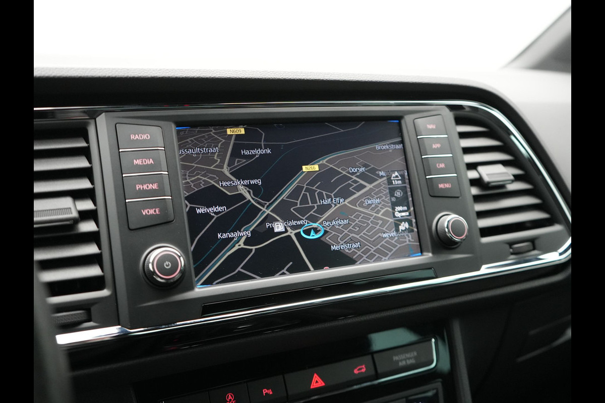 U kunt het audiosysteem en het full map navigatiesysteem bedienen met de knoppen op het stuur of zelfs met uw stem. De auto is ook uitgevoerd met automatische airconditioning. Geen parkeervak is te klein dankzij de assistentie van de parkeersensoren. Natuurlijk is een complete auto als deze ook voorzien van sensoren die de omgeving in de gaten houden. Deze SEAT heeft niet alleen een automatisch inschakelbare verlichting aan boord, maar ook een regensensor. Cruise control verlaagt de brandstofkosten en verhoogt het rijcomfort. Deze SEAT is voorzien van schakelpaddles aan het stuur, automatisch dimmende binnenspiegel, centrale deurvergrendeling met afstandsbediening, bagage afdekhoes, boordcomputer en lederen versnellingspook.