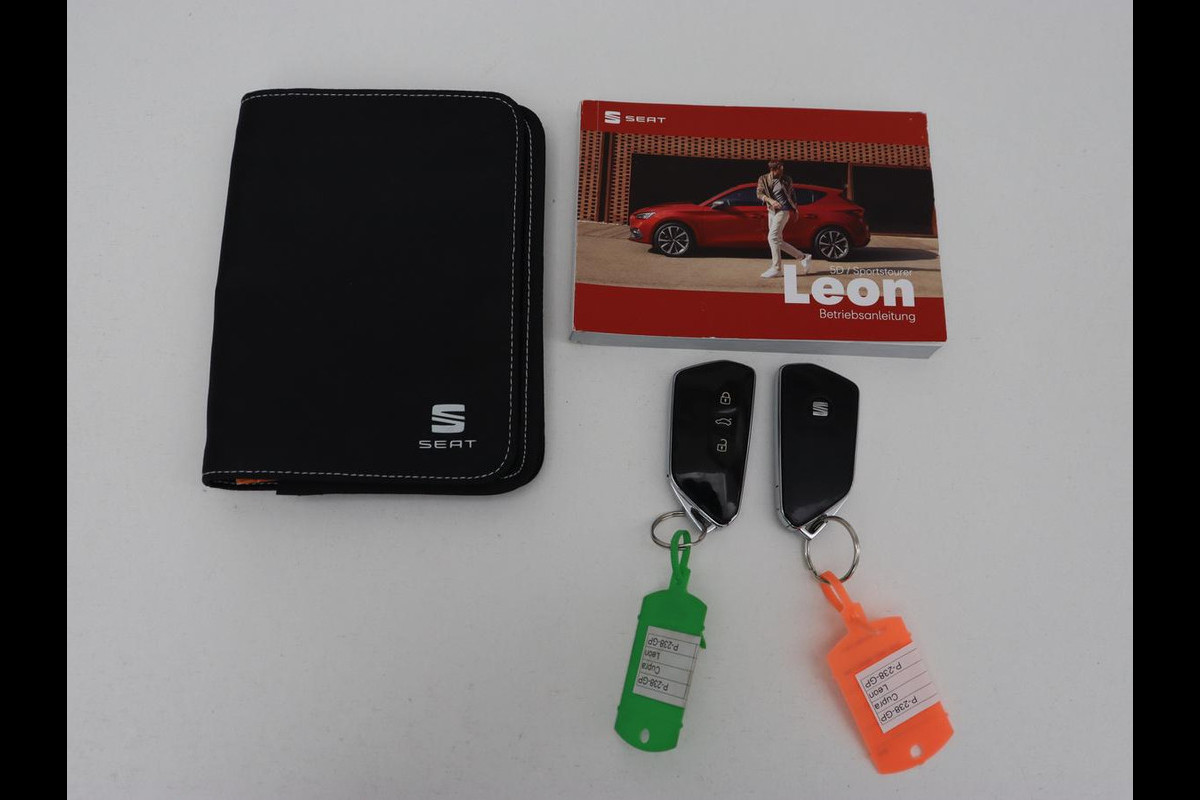 Over het digitale dashboard is goed nagedacht. Alle belangrijke functies binnen en buiten in één oogopslag. Een vergeten muurtje, een verborgen paaltje? Dat gebeurt niet meer, dankzij de achteruitrijcamera. Adaptive cruise control is een comfortabele en veilige optie. Het systeem reguleert de snelheid en houdt automatisch afstand tot uw voorligger. Deze SEAT Leon is 'connected'. Belangrijke functies worden permanent gemeten en zijn uit te lezen via een speciale app, ook op afstand. Een optie die de veiligheid verhoogt, is de bediening vanaf het stuur van het audiosysteem (met DAB-radio!) en het full map navigatiesysteem. Als u wilt kunt u beiden zelfs met uw stem bedienen. Extra opties op deze auto zijn: automatische airconditioning, draadloos opladen, regensensor, keyless entry, automatisch dimmende binnenspiegel en centrale deurvergrendeling met afstandsbediening.