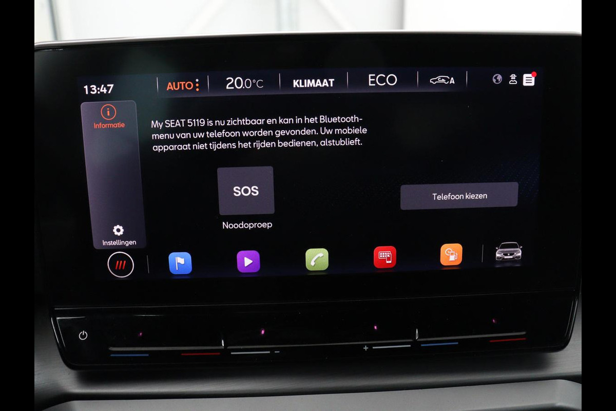 De indeling van het digitale dashboard is zo ingericht dat u met één blik precies weet wat u weten wilt. Adaptive cruise control houdt de ingestelde snelheid vast en houdt afstand tot het voertuig voor u. De auto is voorzien van een trekhaak en is een uitstekende caravantrekker. Communiceren met uw auto? Dat gaat via remote services. Met uw smartphone maakt u waar dan ook contact om allerlei functies te checken of te activeren. Het audiosysteem met DAB-ontvangst en het full map navigatiesysteem bedient u veilig met knoppen op het stuurwiel of met gesproken commando's. U bent in deze SEAT ook voorzien van automatische airconditioning, parkeersensoren achter, regensensor, sportstuurwiel, automatisch dimmende binnenspiegel en centrale deurvergrendeling met afstandsbediening.