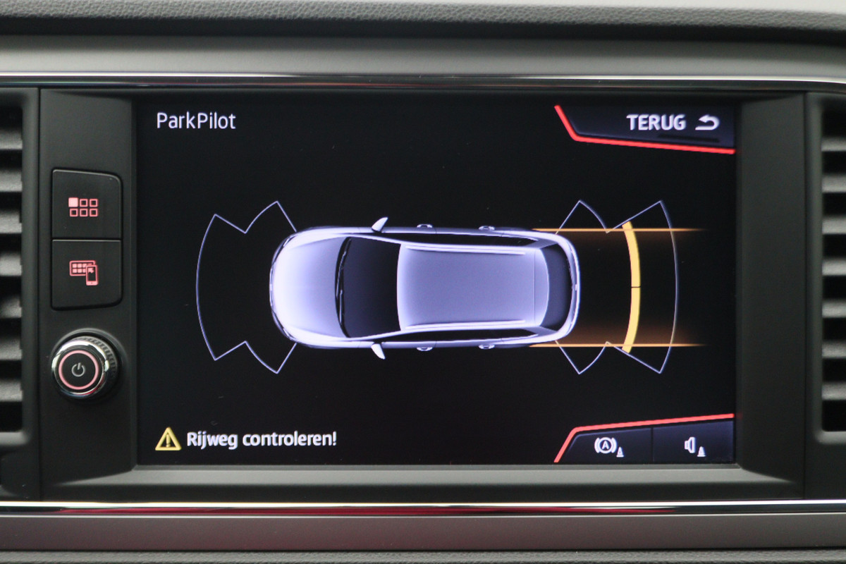 De bediening van het audio-installatiesysteem en het full map navigatiesysteem gebeurt met knoppen op het stuur en als u wilt zelfs met uw stem. De audio is overigens voorzien van DAB-radio voor een altijd heldere ontvangst. Battery low? Even op de draadloze telefoonlader en gaan! De auto is ook uitgevoerd met automatische airconditioning. Boem is ho? Niet bij deze SEAT Leon ST. De piepjes van de parkeersensoren waarschuwen u op tijd voor obstakels. Met de cruise control kunt u zorgen dat u op die rechte stukken toch uit beeld blijft bij de flitsers. Deze SEAT is voorzien van keyless entry, automatisch dimmende binnenspiegel, lederen stuur, isofix-aansluiting, usb-aansluiting en centrale deurvergrendeling met afstandsbediening.