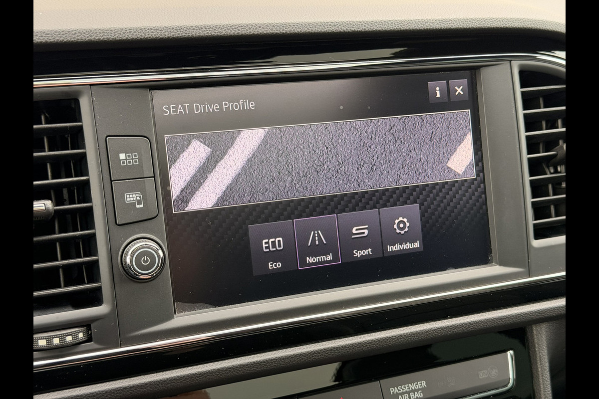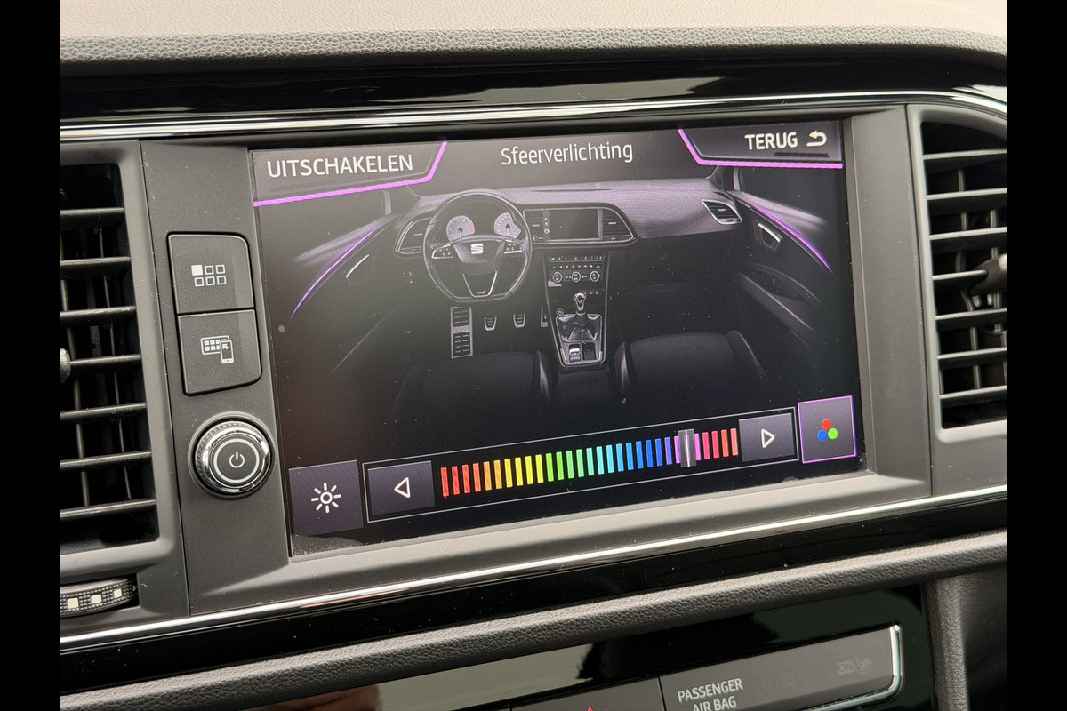 Autohuis Ter Laare biedt deze SEAT Leon FR ST, met 7-traps DSG-transmissie, aan in Mythos Black! Deze Business Intense uitvoering is voorzien van de krachtige 2.0 TSI motor en heeft opties waaronder een glazen panoramisch schuif-/kanteldak, Full Map navigatiesysteem met Bluetooth (bellen en muziek streamen), parkeercamera, Apple CarPlay/Android Auto, DAB+, virtual cockpit, lederen interieur met verwarmbare voorstoelen, Beats Audio geluidssysteem inclusief subwoofer, afneembare trekhaak, isofix, keyless go/entry, LED koplampen, achterlichten & mistlampen, DCC dynamisch onderstel, climate control, adaptive cruise control, de meest uitgebreide RGB sfeerverlichting, privacy glass, multifunctioneel lederen stuurwiel met F1-flippers, zwarte dakhemel, draadloze telefoonlader en een automatisch dimmende binnenspiegel i.c.m. licht-/regensensor.