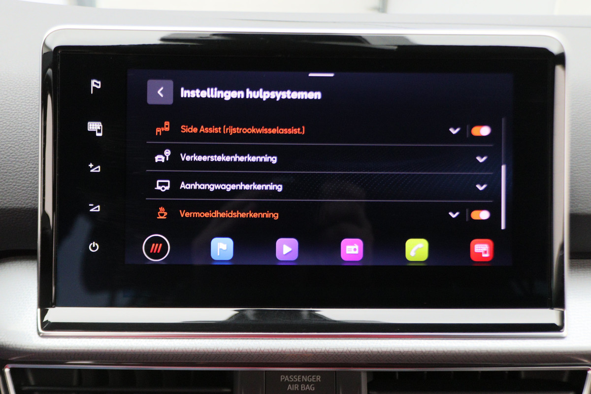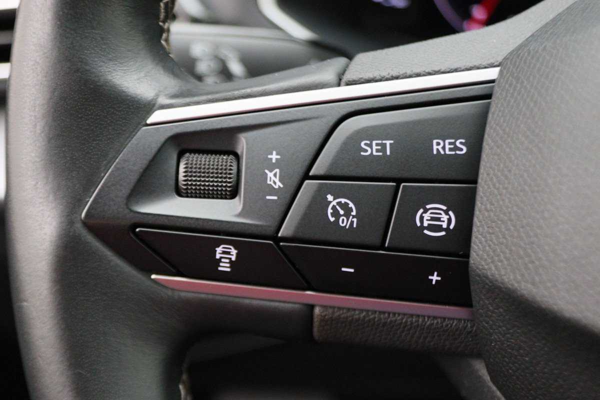 Duik in de digitale wereld van mobiliteit waar alles wat u nodig heeft voor een comfortabele en veilige rit, wordt geprojecteerd op het digitale dashboard. Hoeveel ruimte heeft u nog bij het inparkeren? De achteruitrijcamera brengt helder in beeld wat zich achter de auto bevindt en geeft een geluidssignaal. Adaptive cruise control is een comfortabele en veilige optie. Het systeem reguleert de snelheid en houdt automatisch afstand tot uw voorligger. Onderweg kunt u veilig genieten van het audio-installatiesysteem met DAB-radio en het full map navigatiesysteem. Want in deze SEAT bedient u ze vanaf het stuurwiel of met uw stem. Onderweg uw smartphone opladen zonder gedoe met stekkers en kabels? Dat kan, met de draadloze oplaadmogelijkheid voor telefoons. En dan is deze auto ook nog eens voorzien van kruisend verkeer detectie, regensensor, keyless entry, airconditioning, automatisch dimmende binnenspiegel en lederen stuur.