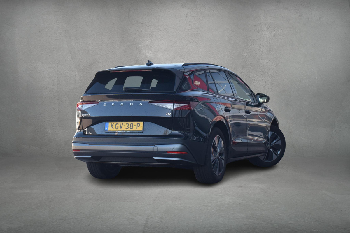 De vormgeving van deze Skoda Enyaq is geoptimaliseerd voor een optimale actieradius. Zo haalt u maximaal rijplezier uit elke kilometer. De aandrijflijn maakt gebruik van de meest moderne accutechniek, zodat het opladen in zo kort mogelijke tijd gebeurt. Het rijbereik van deze auto is groot genoeg om er de meest voorkomende dagelijkse ritten mee te maken. 's Winters op pad gaan kan een behoorlijke uitdaging zijn. Daarom is deze Skoda Enyaq voorzien van weldadige verwarmbare voorstoelen. Het interieur baadt in daglicht dankzij het elektrisch bediende glazen panoramadak. De elektrische achterklep opent met een druk op de knop, zodat u gemakkelijk toegang heeft tot de bagageruimte. Stramme vingers krijgen 's winters een VIP-behandeling van het verwarmd stuurwiel. De verlichting van de koplampen geeft het gevoel dat het altijd dag is. De slimme matrix LED-technologie past zich aan bij tegenliggers, zonder verlies van lichtkwaliteit. Bij de uitrusting van deze Skoda horen onder meer 19 inch lichtmetalen velgen, geluidsisolerende ramen, in delen neerklapbare achterbank, LED-achterlichten en verwarmde ruitensproeiers.