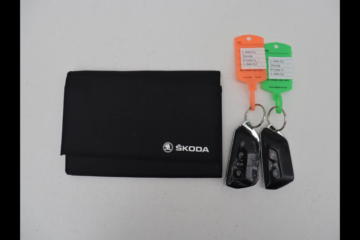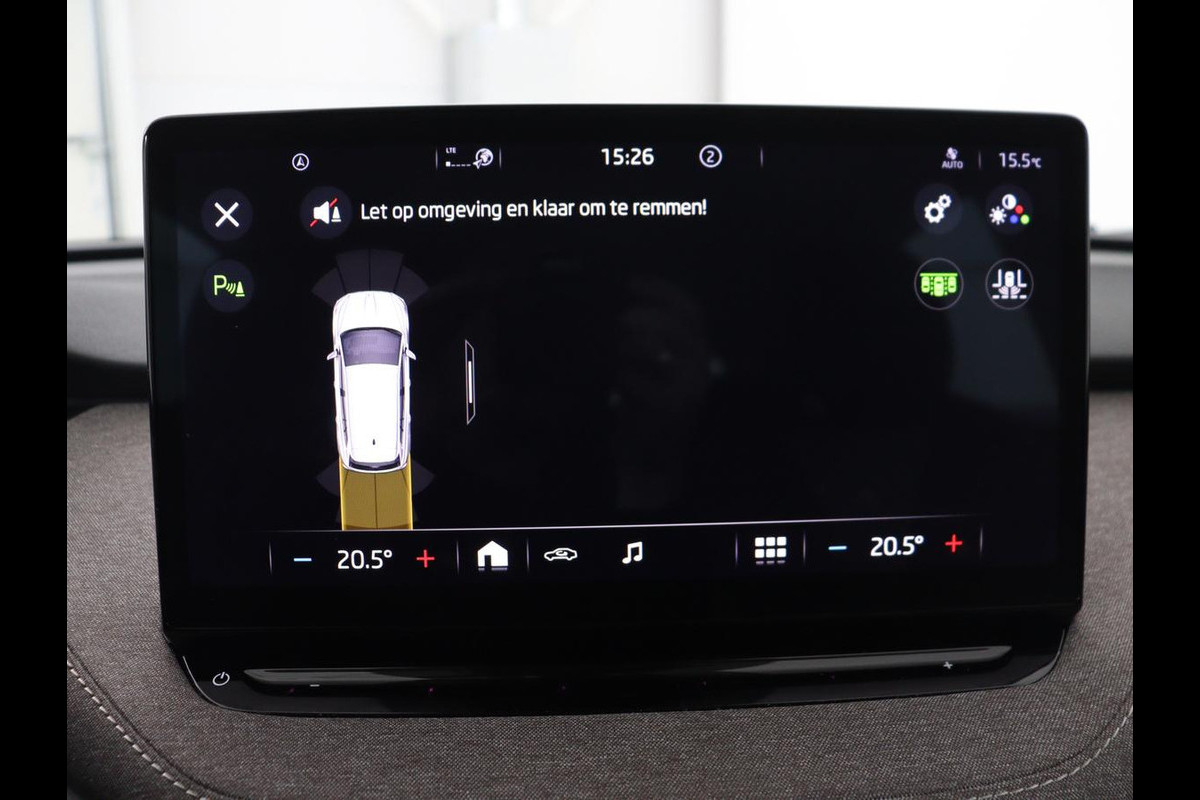 Deze auto is voorzien van een digitaal dashboard waarmee u de cockpit-interface kunt personaliseren. Via uw smartphone en Connected Services checkt u eenvoudig de belangrijke functies van de auto, overal en altijd. Een optie die de veiligheid verhoogt, is de bediening vanaf het stuur van het audiosysteem (met DAB-radio!) en het full map navigatiesysteem. Als u wilt kunt u beiden zelfs met uw stem bedienen. In een auto als deze kunt u niet zonder electronic climate control, zodat de temperatuur altijd goed is. Een plekje vinden in de binnenstad is één, inparkeren is twee. Voor dat laatste heeft deze Skoda Enyaq iV prima parkeersensoren die u een handje helpen. Natuurlijk behoren regensensor, cruise control, automatisch dimmende binnenspiegel en centrale deurvergrendeling met afstandsbediening ook tot de uitrusting van deze complete auto.