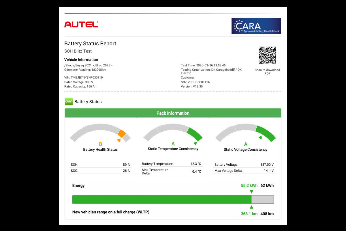 Accu: 58 kWh, Conditie: 89%