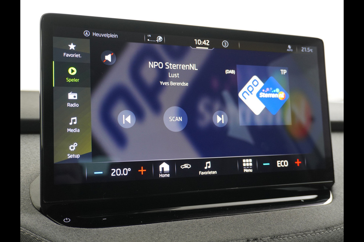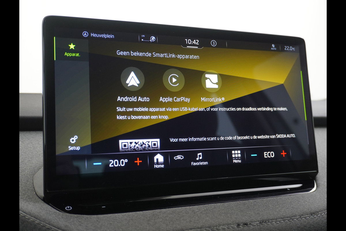 Het eigentijdse interieur wordt natuurlijk helemaal volmaakt met het digitale dashboard. De hoogwaardige achteruitrijcamera en het display met hoge resolutie zorgen dat helemaal niets u meer ontgaat van wat er achter de auto gebeurt. Met uw smartphone maakt u overal contact met de auto. Remote services geven direct inzicht in uiteenlopende functies en zijn op afstand te activeren. Voor een veilige rit is het belangrijk dat uw handen het stuur vasthouden en uw ogen gefocust blijven op de weg; daarom kunt u het audio-installatiesysteem, met DAB-ontvangst en navigatiesysteem bedienen met het stuurwiel of via spraakbediening. Tot de standaard uitrusting van deze auto hoort ook automatische airconditioning. De ŠKODA is standaard voorzien van: regensensor, cruise control, automatisch dimmende binnenspiegel, lederen stuur, isofix-aansluiting en usb-aansluiting.