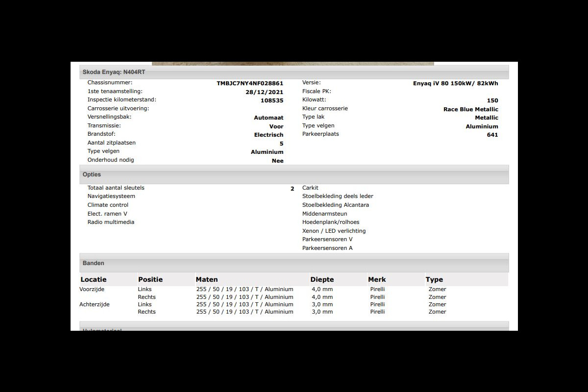 Het kan echter voorkomen dat uit de automatische voertuiginformatie een optie of accessoire naar voren komt die helaas toch niet op de auto aanwezig is.