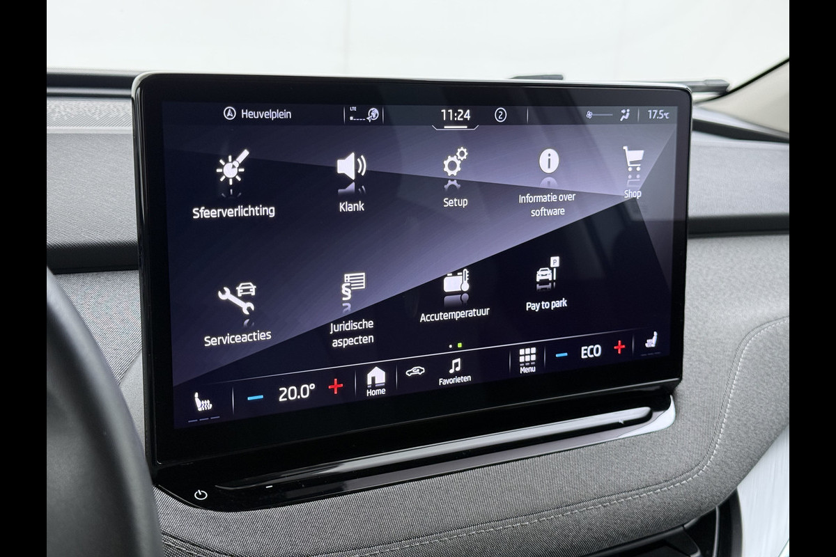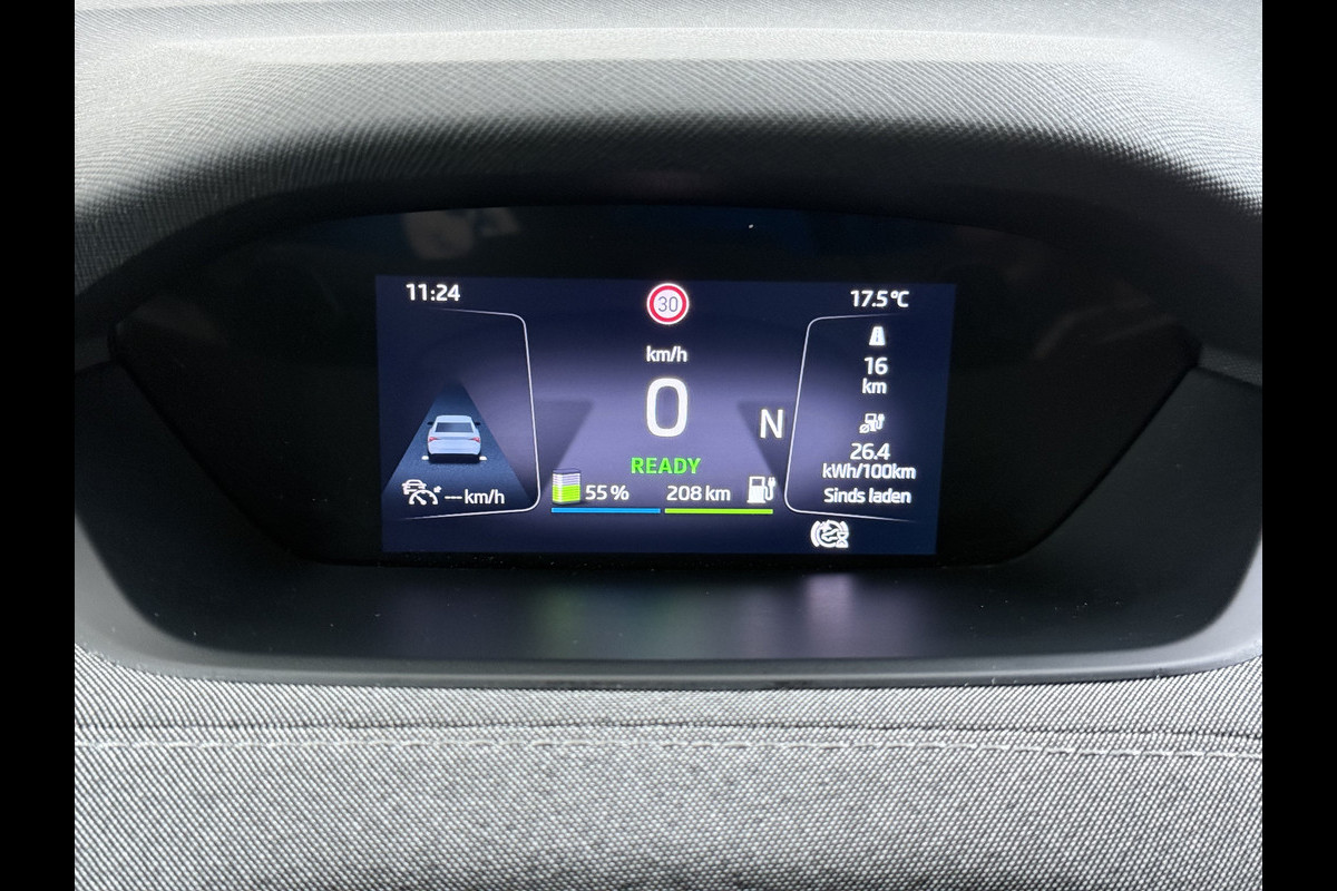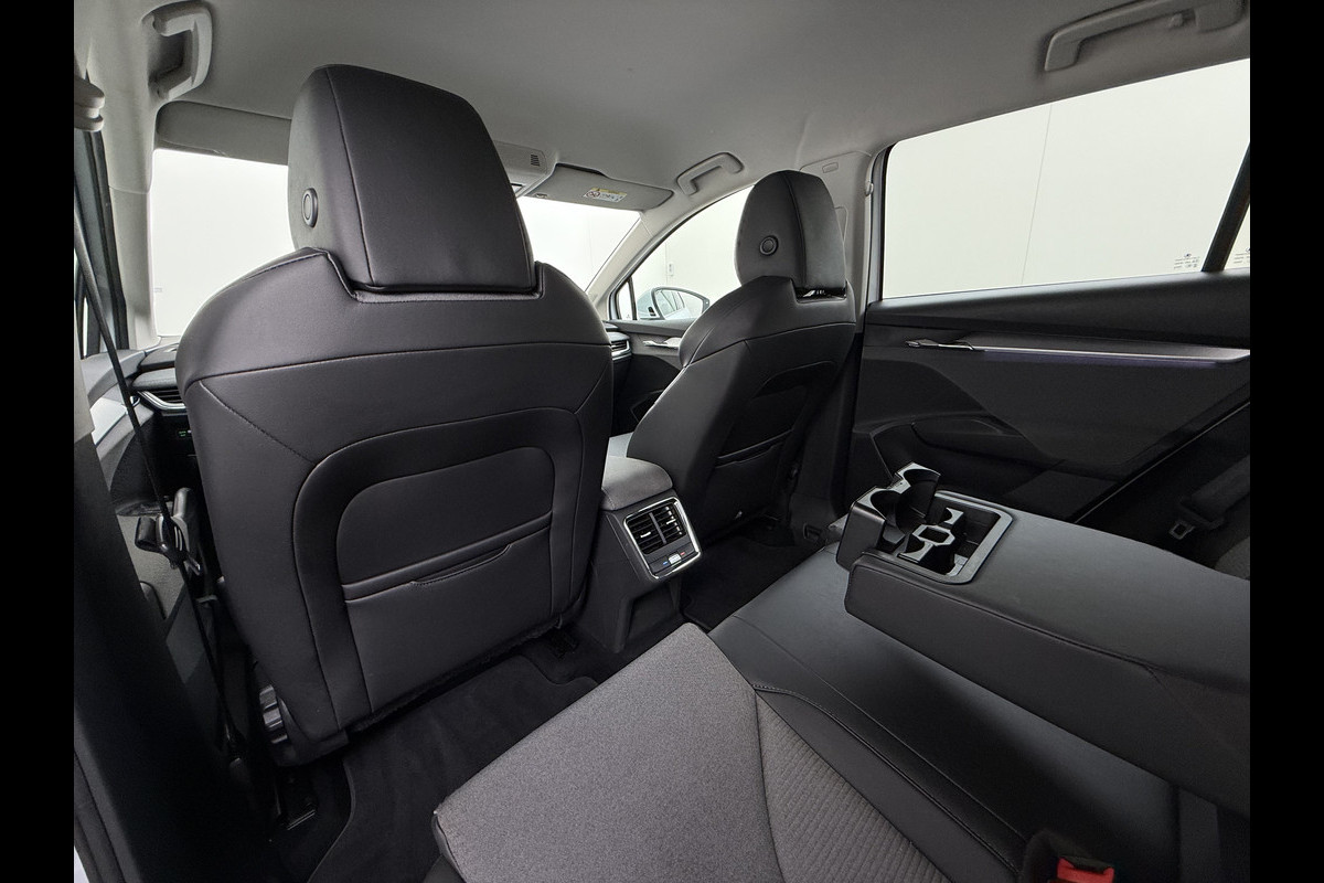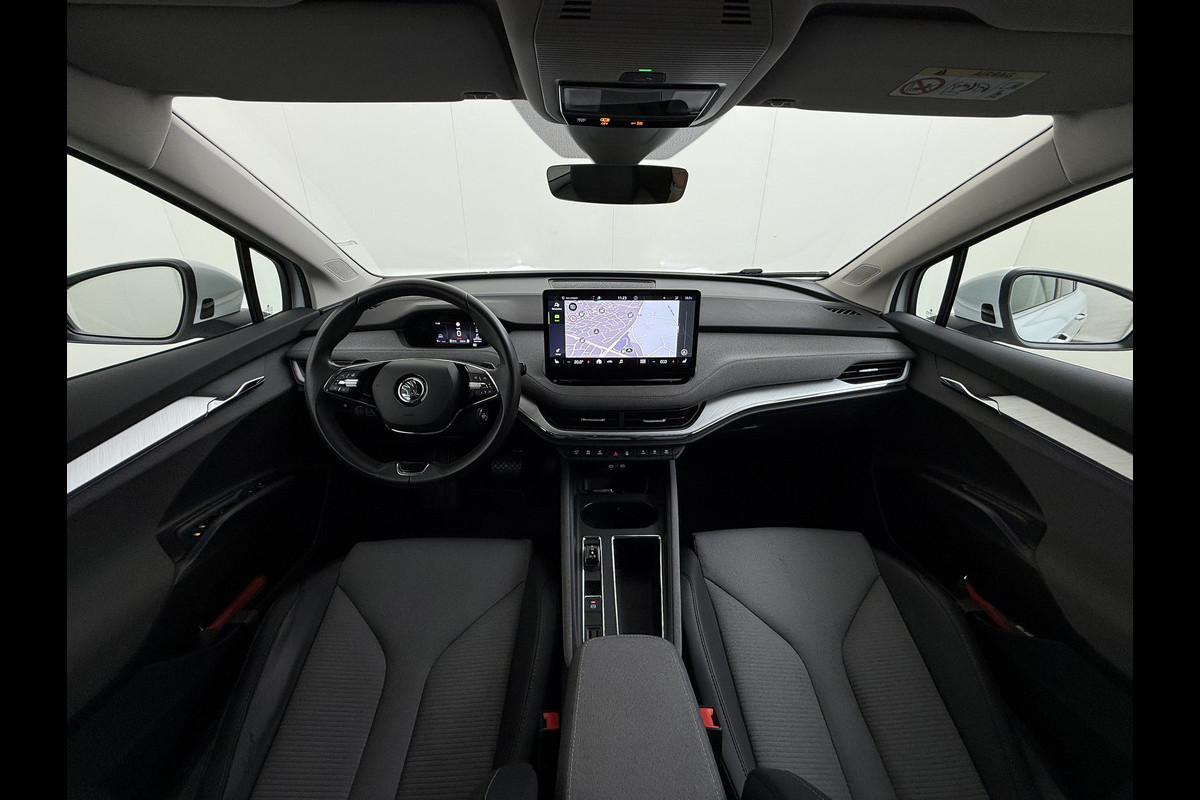 Ontdek de digitale mobiliteitswereld, met zijn dashboard dat alle noodzakelijke informatie projecteert om uw reis comfortabel en veilig te maken. Met de achteruitrijcamera ziet u wat er achter de auto gebeurt. Zo rijdt u moeiteloos achteruit. Als u de adaptive cruise control inschakelt, regelt de auto zelf de snelheid en de afstand tot de auto voor u. Rijden-stilstaan, rijden-stilstaan. Niks is irritanter en vermoeiender dan filerijden. Daar heeft deze ŠKODA Enyaq iV een oplossing voor: de file assistent, die met radarmeting permanent het tempo aanpast op de voorligger. Zelfs als die stopt. Uw smartphone wordt een dashboard, met alle functies in beeld. Dankzij Connected Services en de speciale app. Ook dashboard met spraakbediening, full map navigatiesysteem, automatische airconditioning, draadloos opladen, DAB ontvangst en regensensor horen tot de voorzieningen op deze auto.