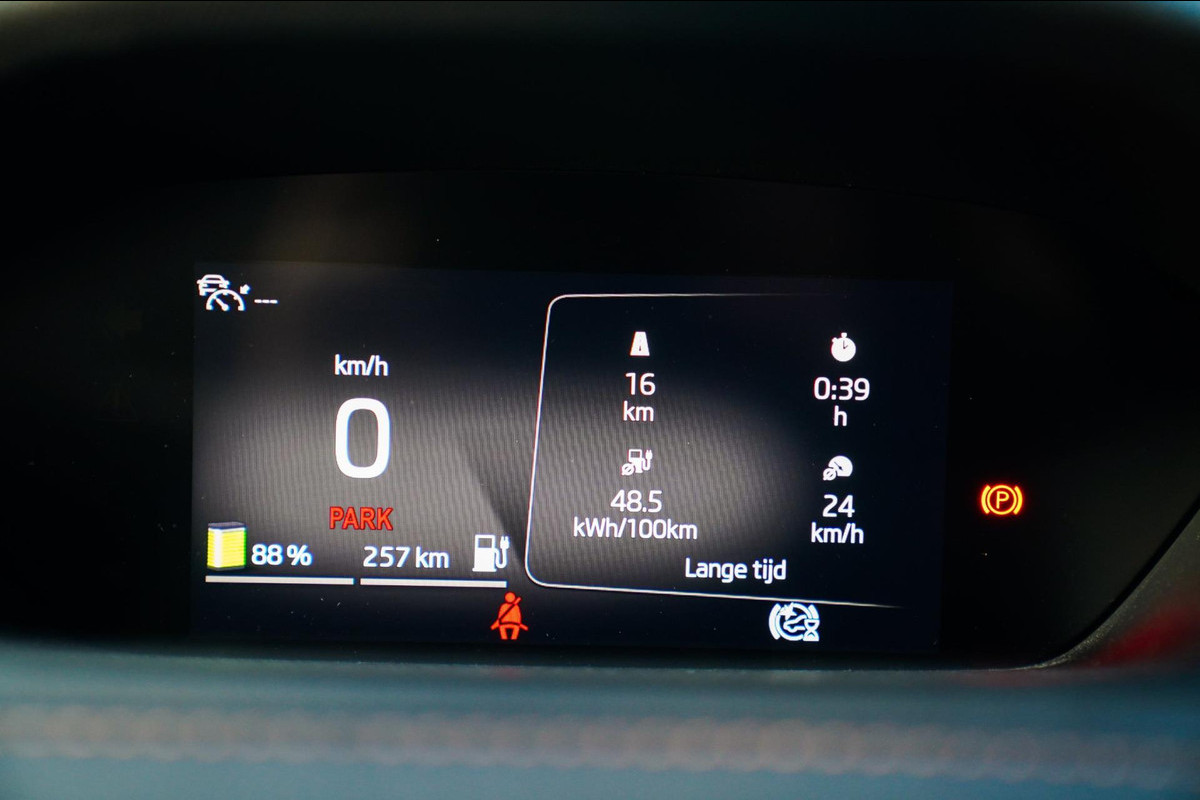 Accu laden: Type 3, 3-fasen, 11 kW, 76 km actieradius per uur, compleet vol in 21 uur en 23 minuten