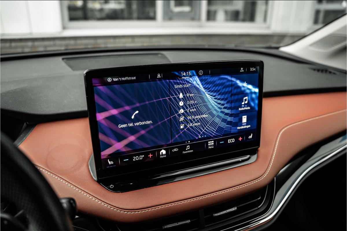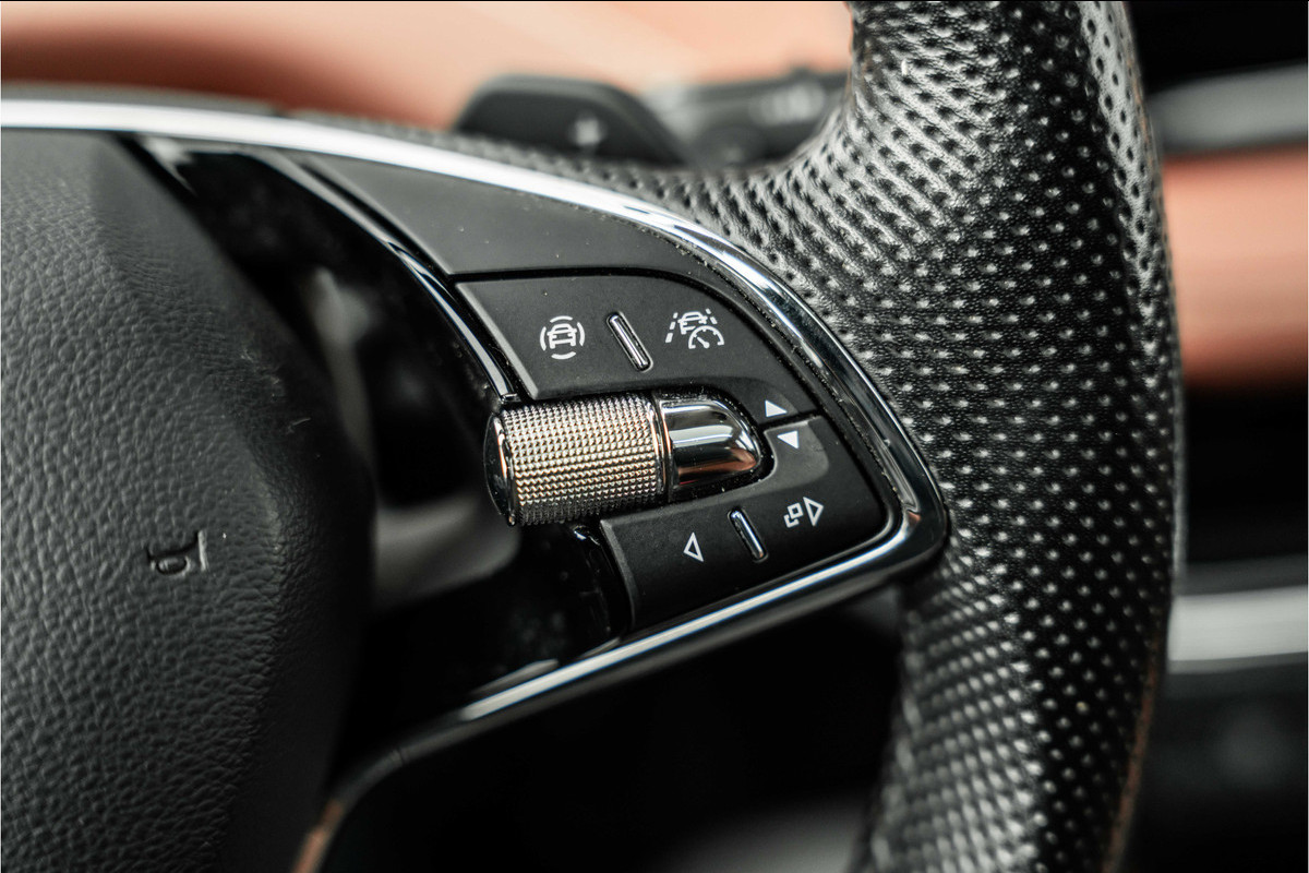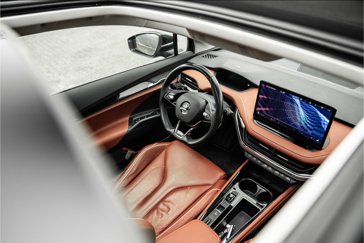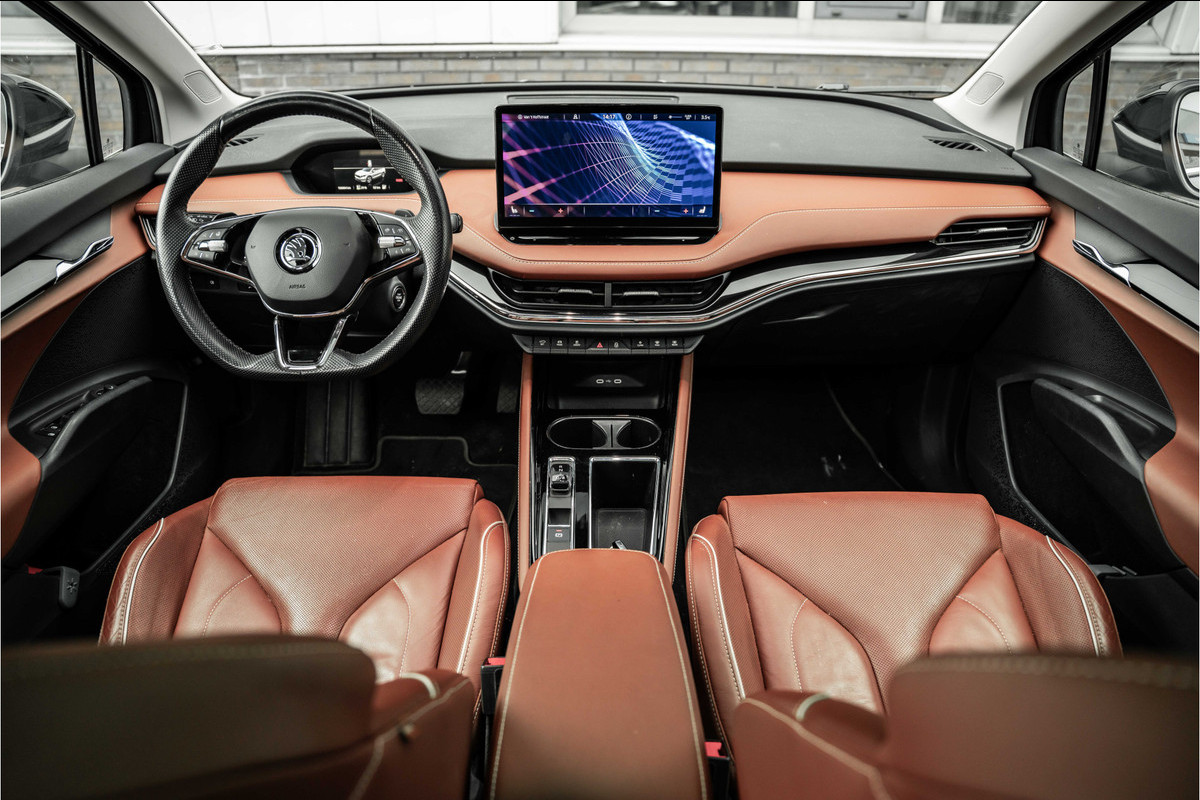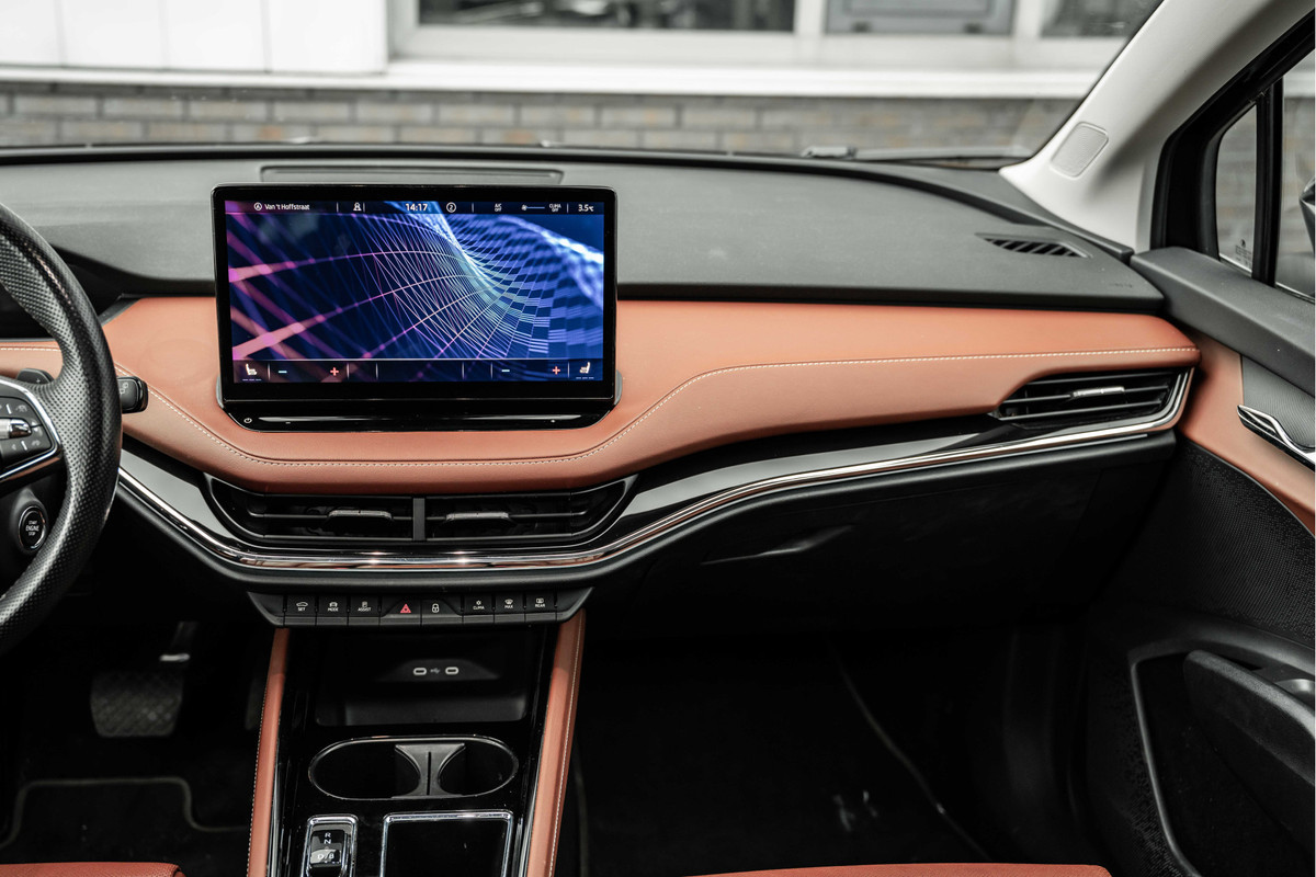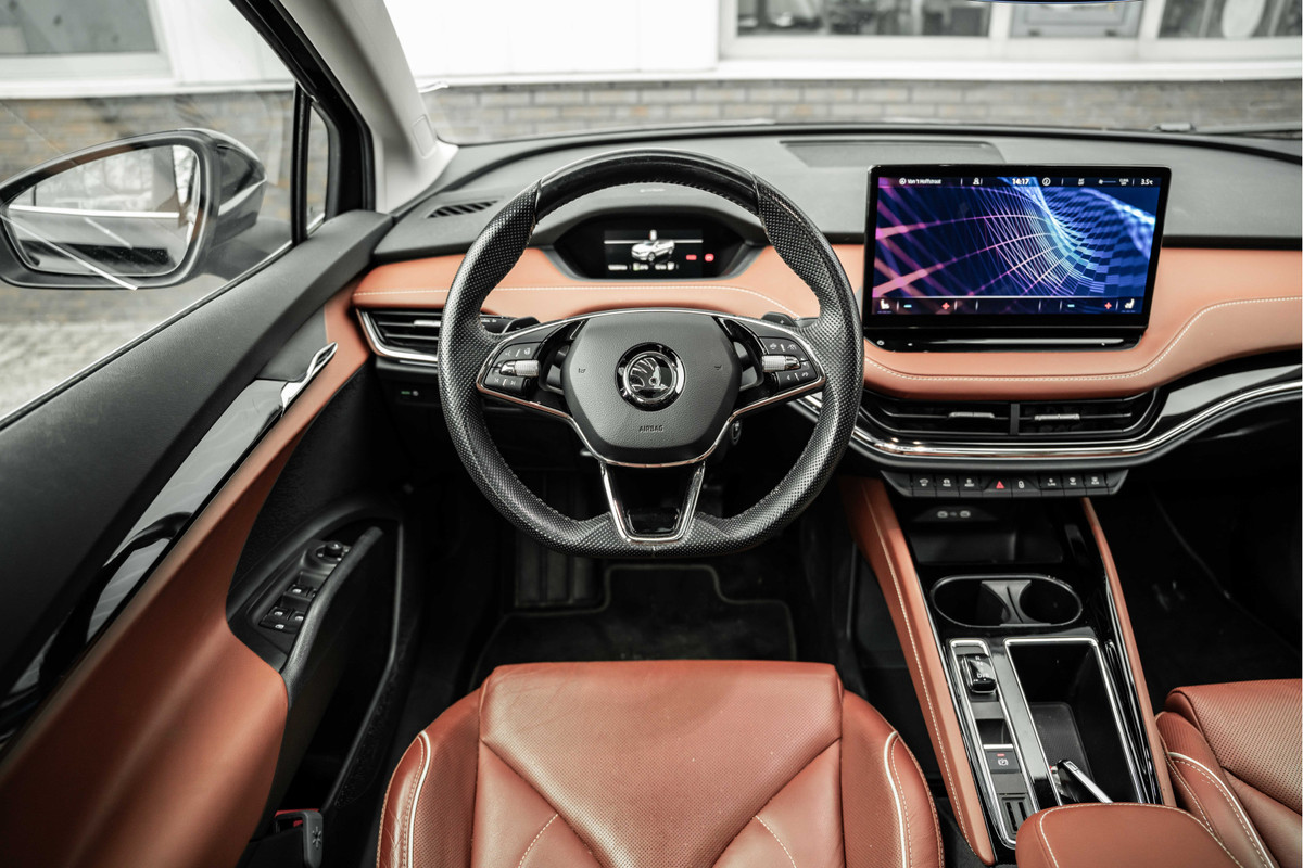 Het digitale dashboard geeft alle up-to-date info en functies voor een slimme en veilige rit. Boem is ho? Dat is verleden tijd. De achteruitrijcamera laat precies zien hoeveel ruimte u achter nog heeft! De ingebouwde Connected Services vertellen u via de app alles over de status van de auto. Locatie, onderhoudsstatus, brandstofpeil en nog veel meer! In deze Enyaq iV vindt u niet alleen schakelaars op het stuur om het full map navigatiesysteem te bedienen en het audiosysteem met DAB-ontvangst, maar er is ook spraakbediening. De electronic climate control zorgt onder alle omstandigheden voor een prettige temperatuur. De uitrusting van deze ŠKODA is met schakelpaddles aan het stuur, regensensor, cruise control, automatisch dimmende binnenspiegel en centrale deurvergrendeling met afstandsbediening behoorlijk compleet.