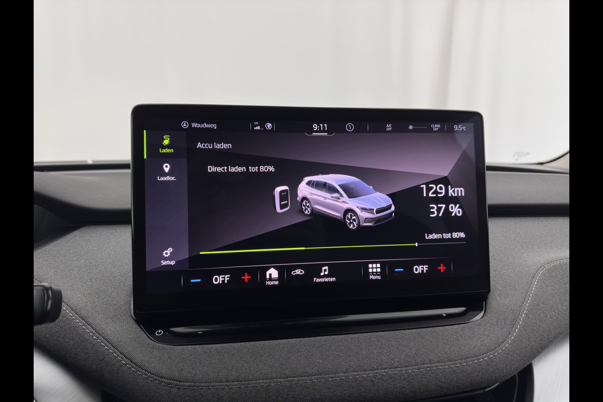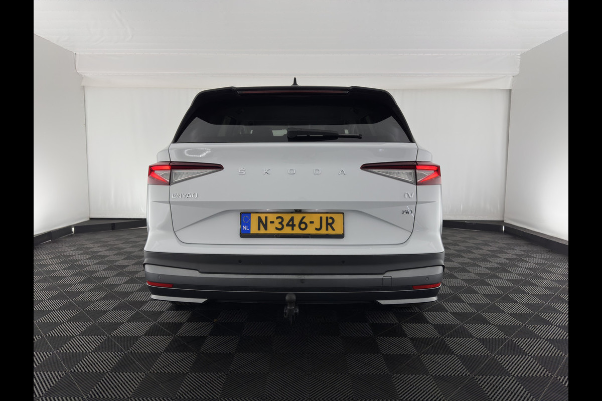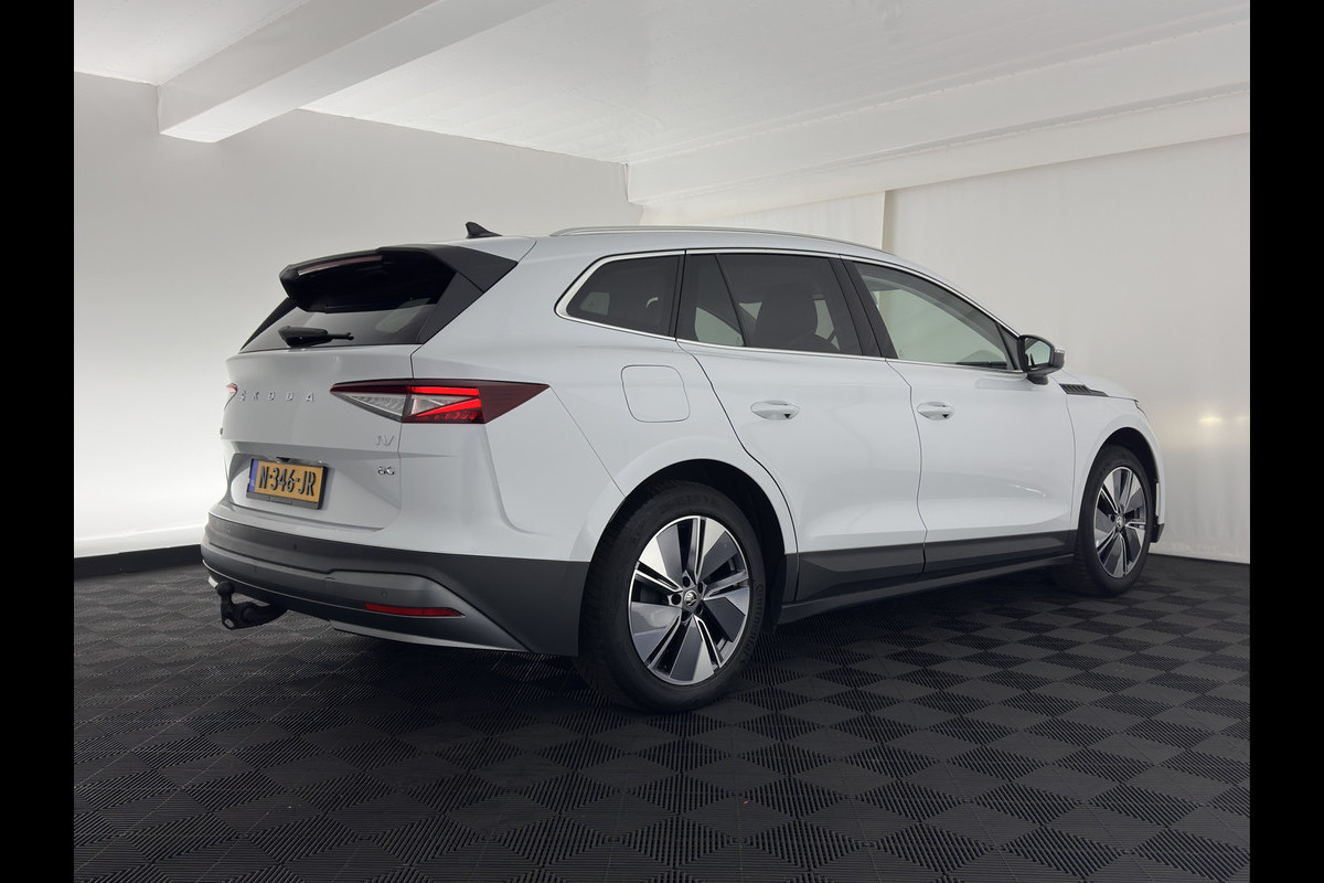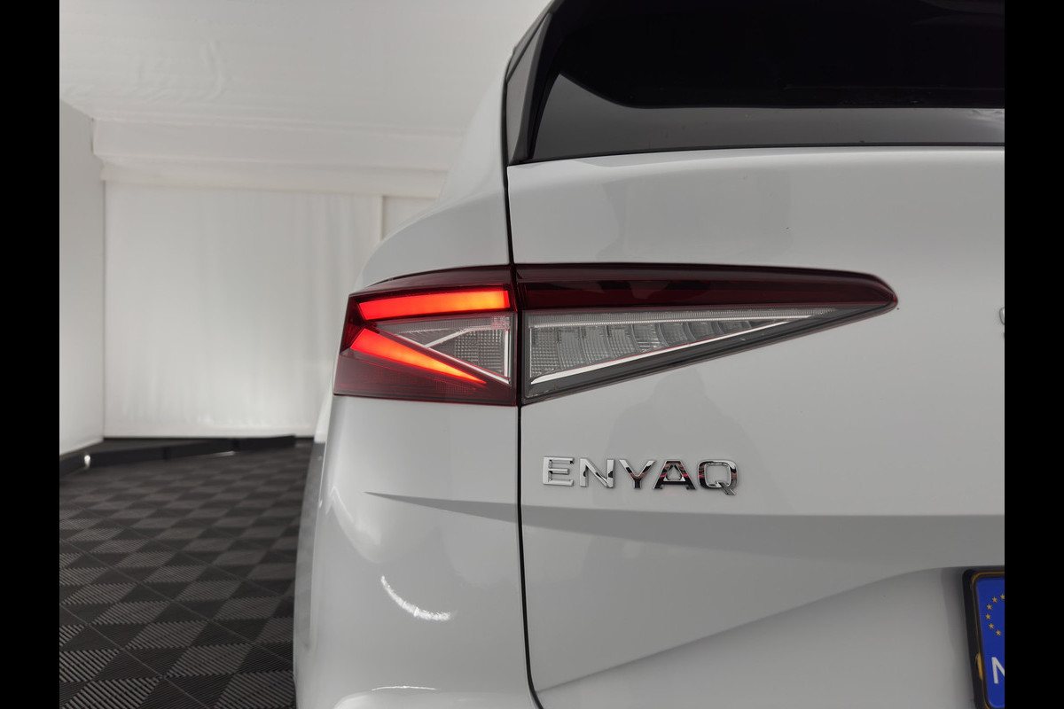 Škoda ENYAQ iV 80 {SOH-90%} [ 3-Fase ] (INCL-BTW) *LEATHER-FABRIC | FULL-LED | DIGI-COCKPIT | CAMERA | KEYLESS | NAVI-FULLMAP | AMBIENT-LIGHT | ECC | HEATED-COMFORTSEATS | DAB+ | PDC | CRUISE | CARPLAY | TOWBAR | 19"ALU*