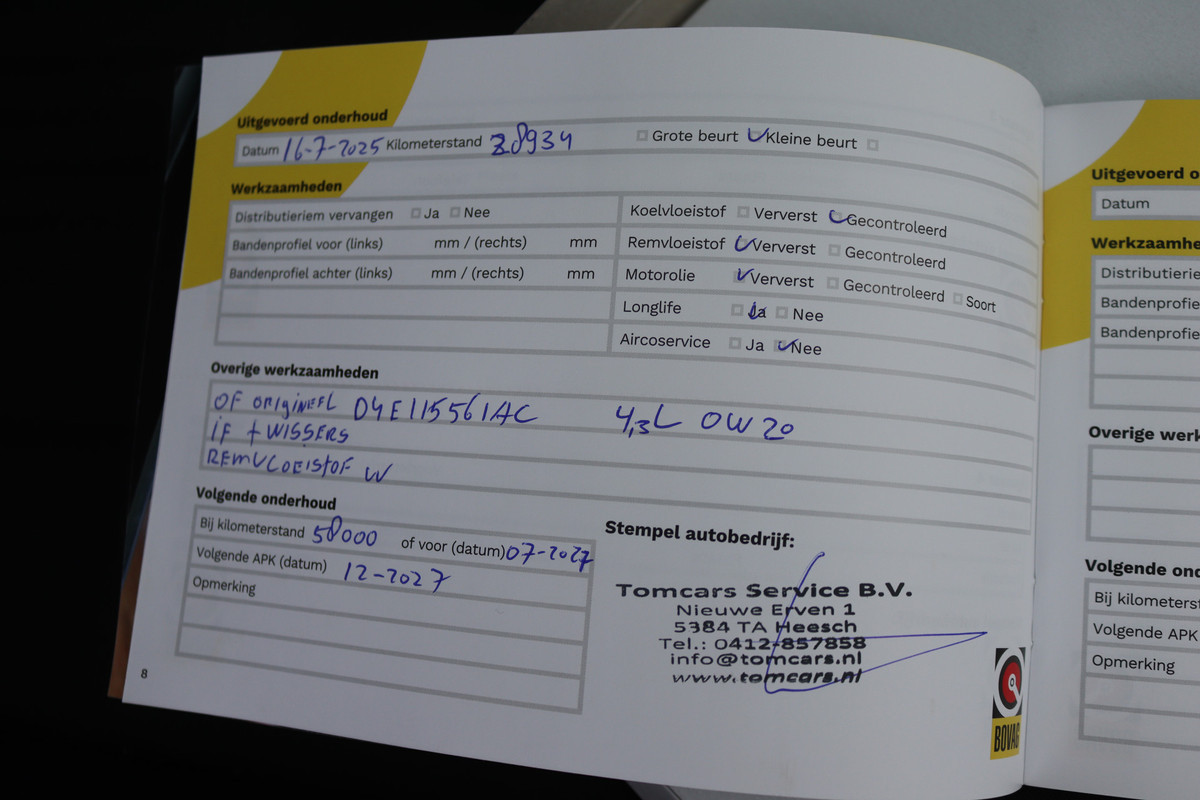 Onderhoudsboekjes: Aanwezig