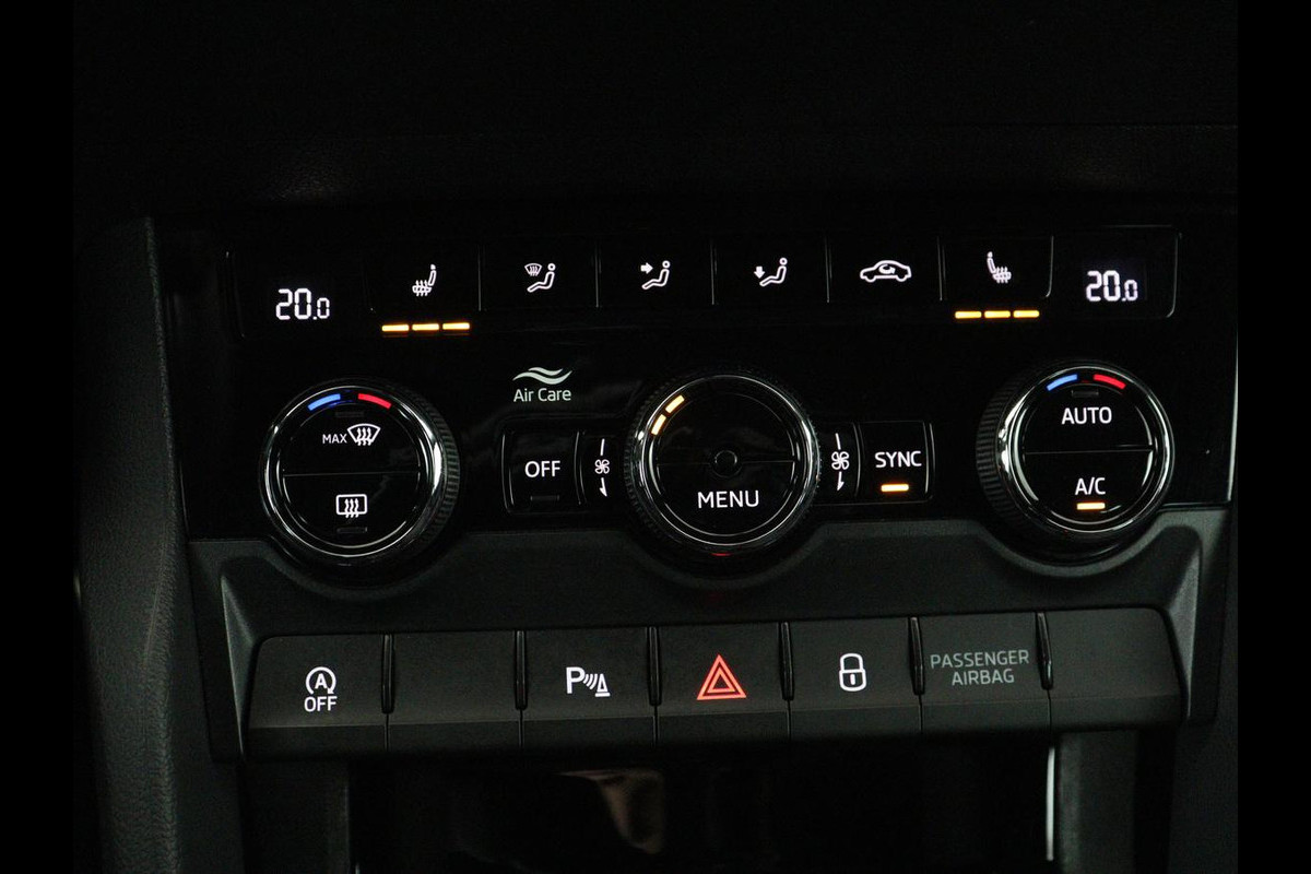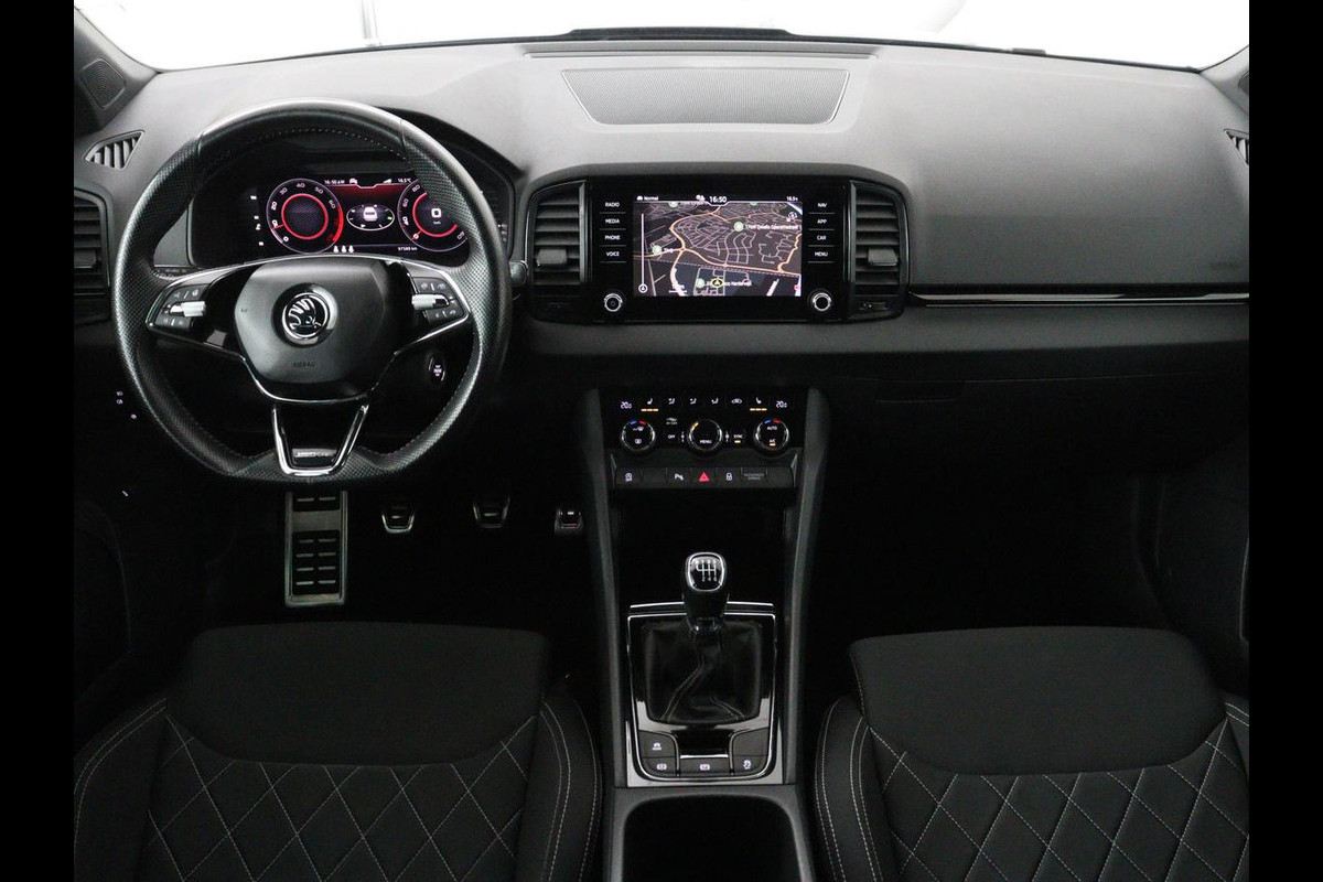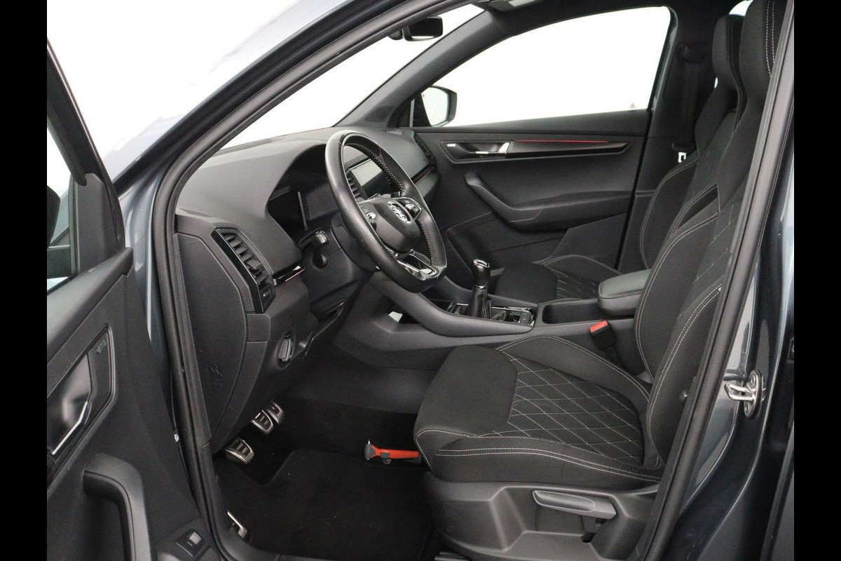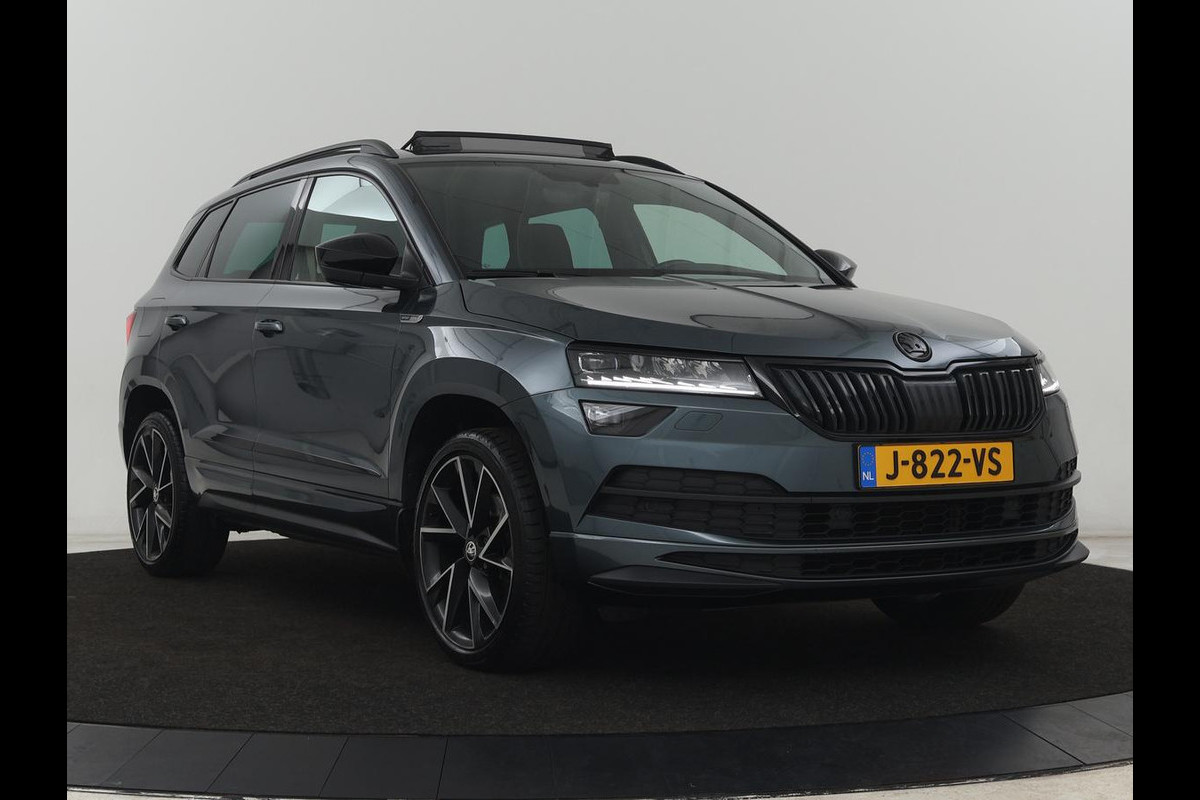 Škoda Karoq 1.5 TSI Sportline | Panoramadak | Trekhaak | Stoelverwarming | Camera | Carplay | Virtual Cockpit | Canton Sound | 19'' | Parkeerhulp | Navigatie | Sfeerverlichting | Cruise control | Stuurverwarming